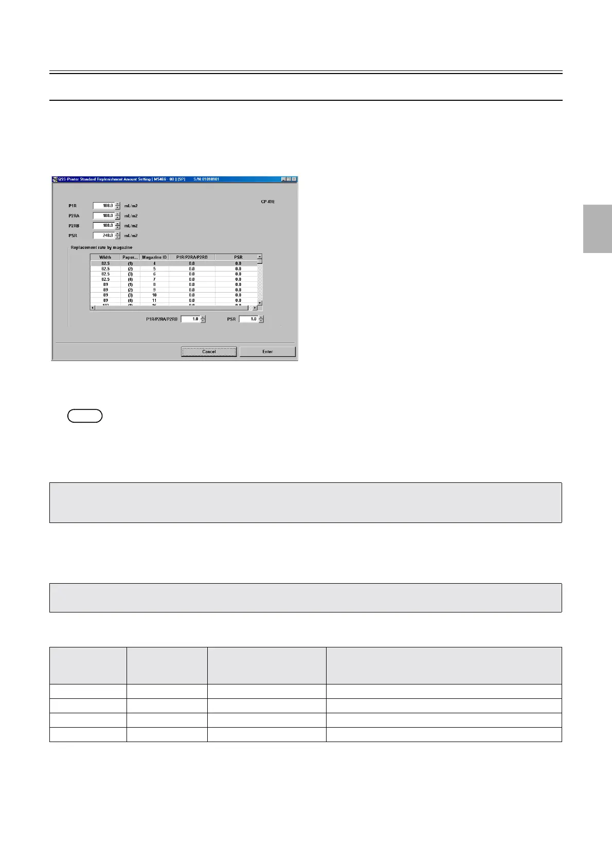 The standard replenishment amount of P1R/P2RA/P2RB, PSR can be specified for each Width, Paper Surface and Magazine ID.