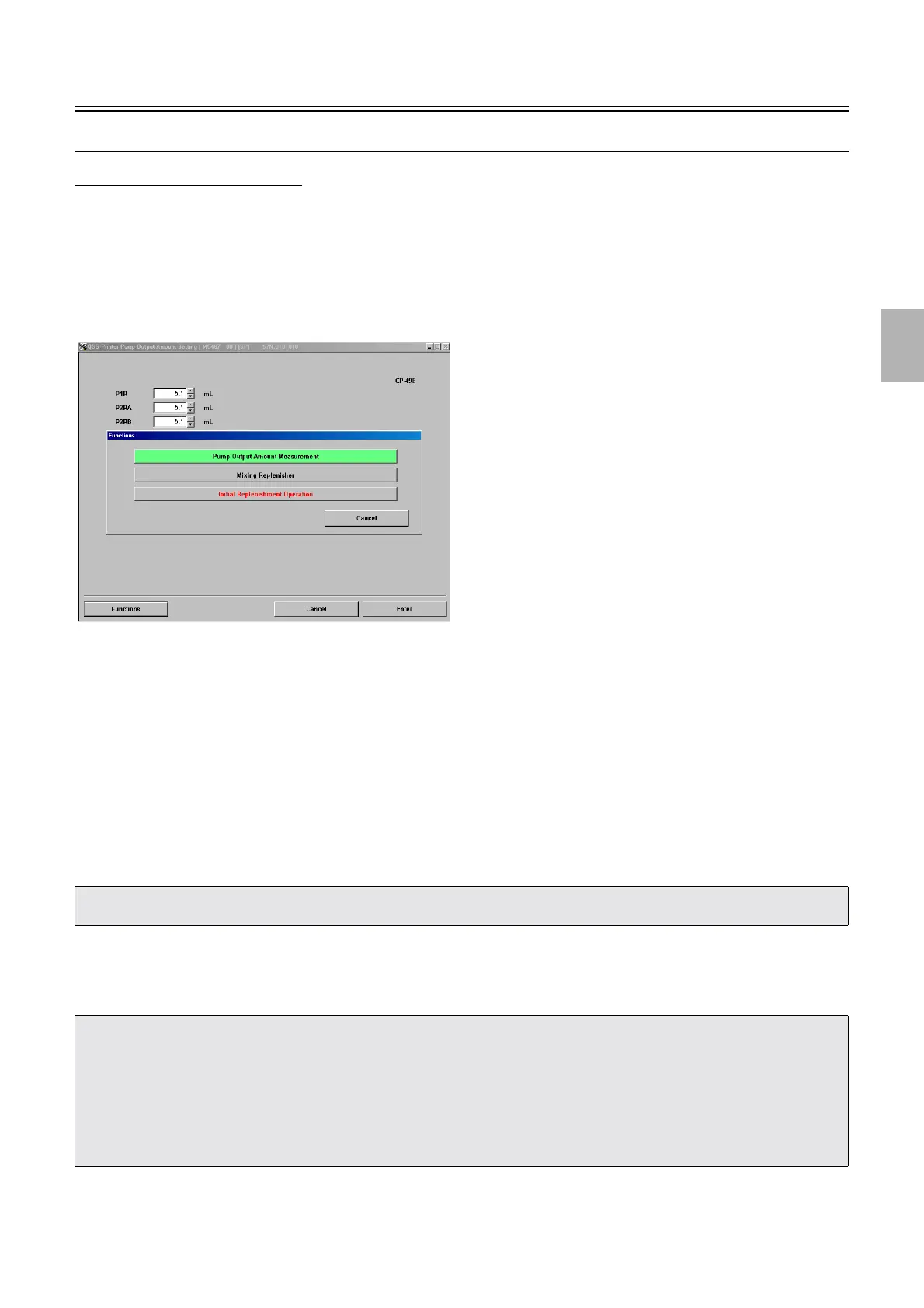 • Do not return the replenishment solution used for measuring the output amount to the replenishment tank because this amount is