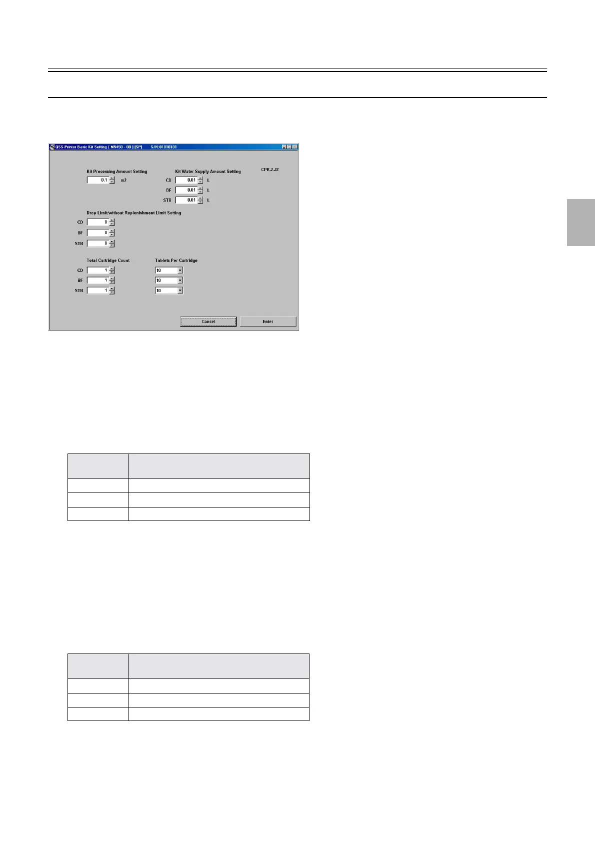 The number of cartridges per kit can be set.