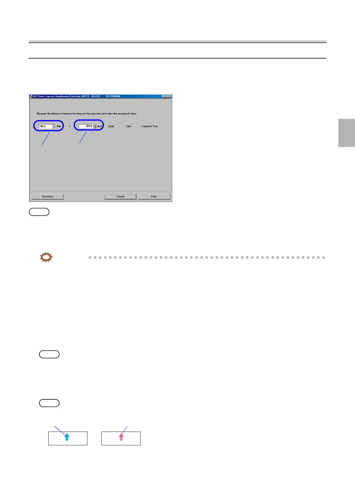 ! Cyan Line Exposure Size (Initial value: 160.0 mm) (Input range: 65.0 to 295.0 mm)