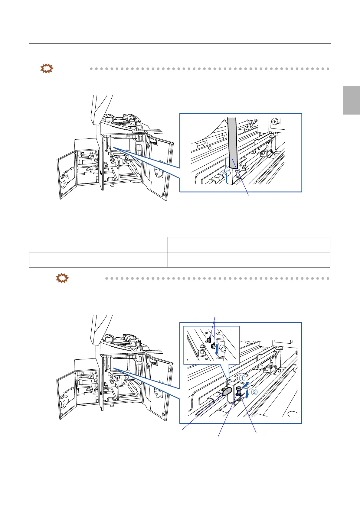 1. Loosen the fixing screw on the positioning pin for the magazine deck B. (Loosen two fixing screws.)