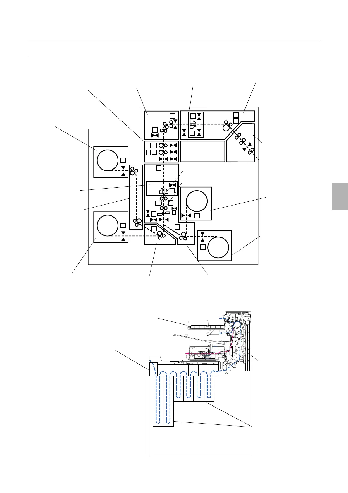The following diagram shows the paper advance path in the processor by dotted lines.