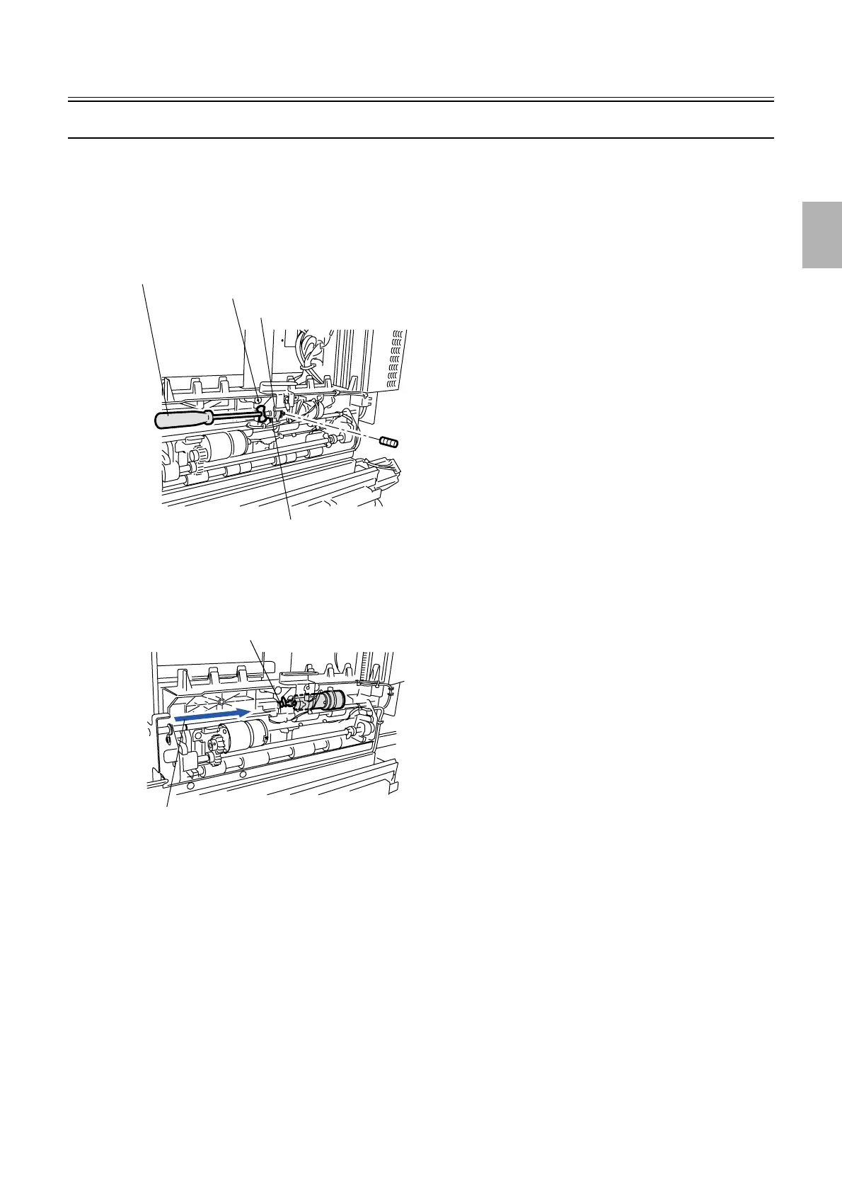 (3) Loosen another set-screw of the paper hold motor that is loosened in step 2. (Loosen one of the two set-screws.)