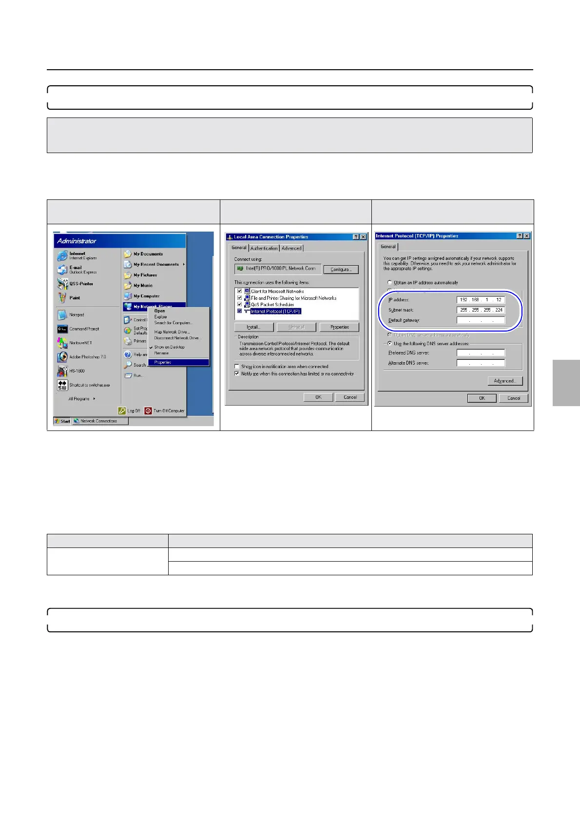 (4) Change IP Address, Subnet mask , and Default gateway of the operation PC to connect IP Address : 192 .