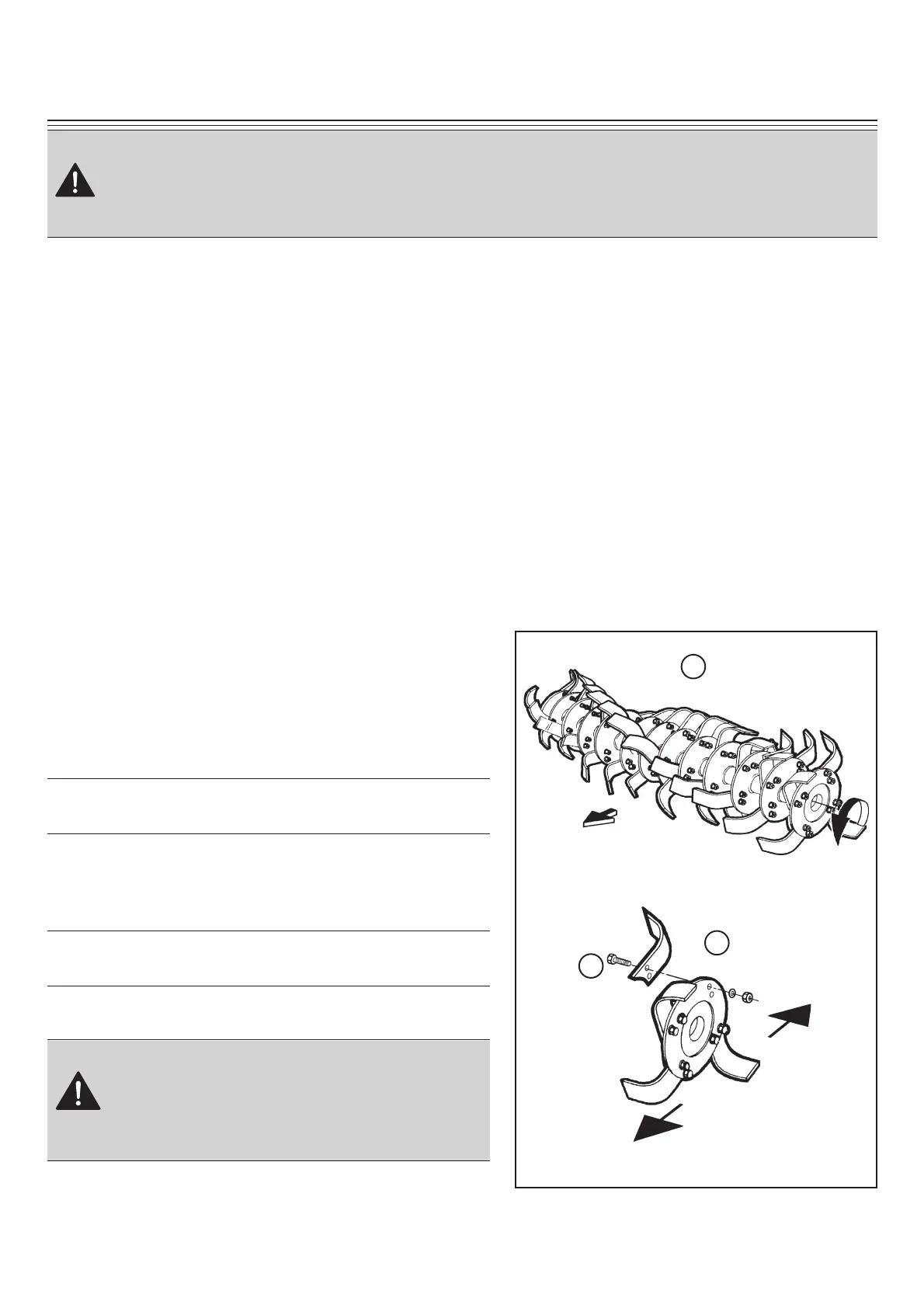 Before replacing tines make sure the tiller is fi rmly blocked.