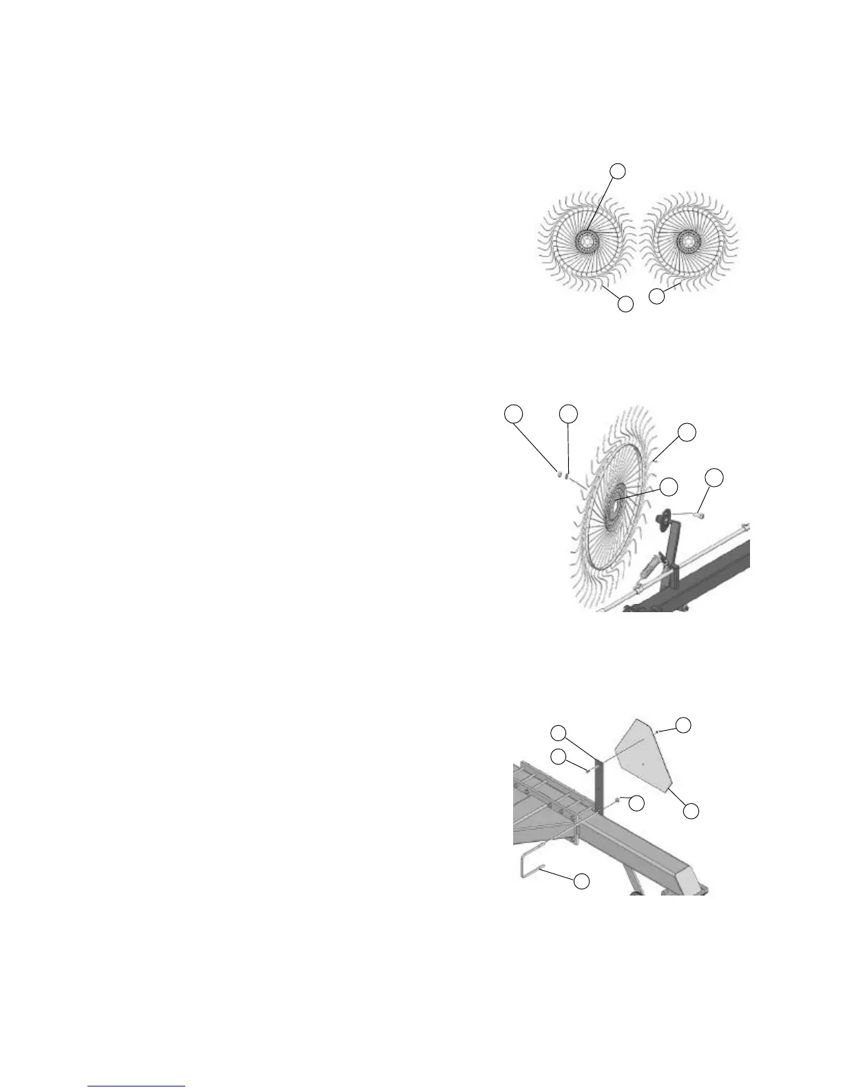 8. With the flange (C) of the rake wheel facing