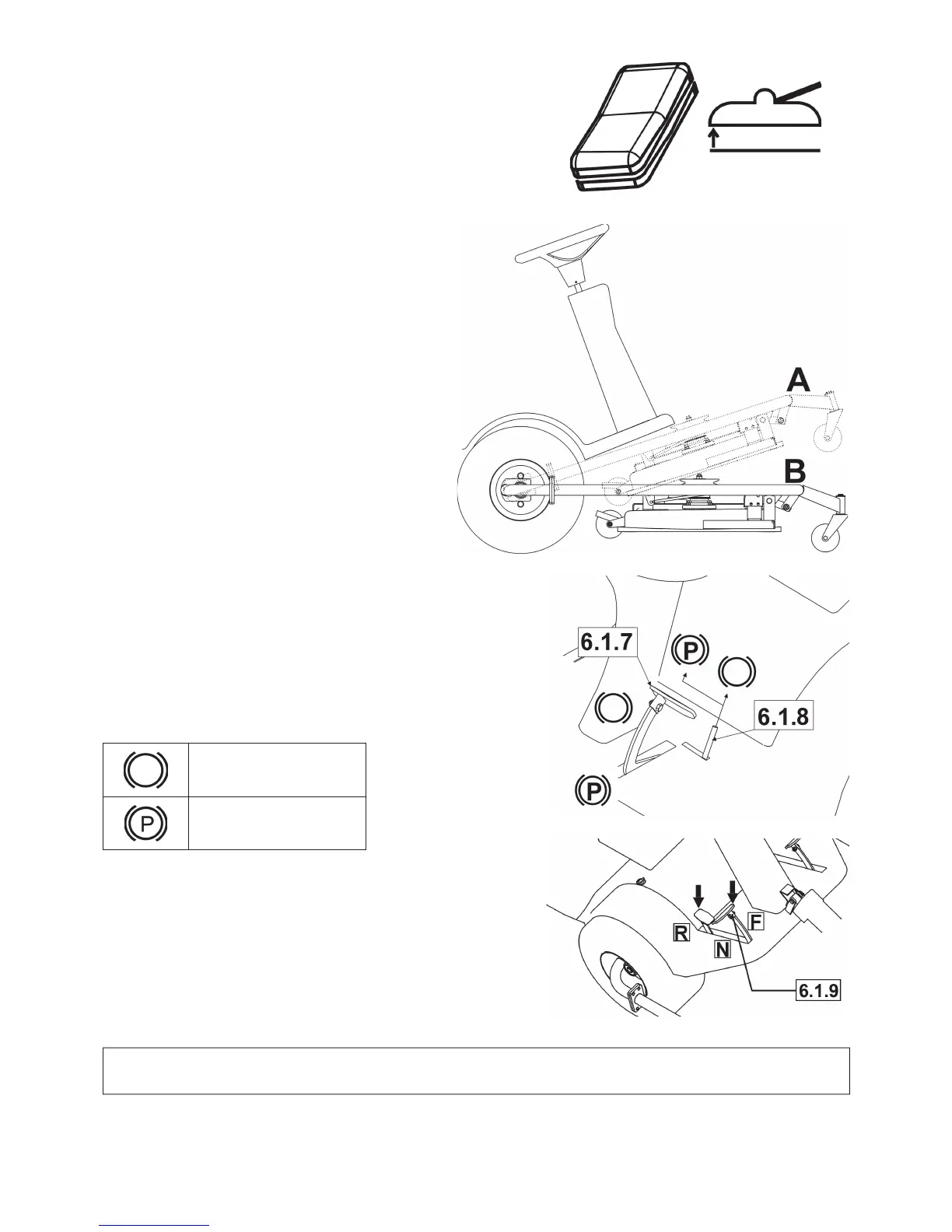 Appuyez doucement par le talon du pied la pédale dans le sens “R“, ŕ un