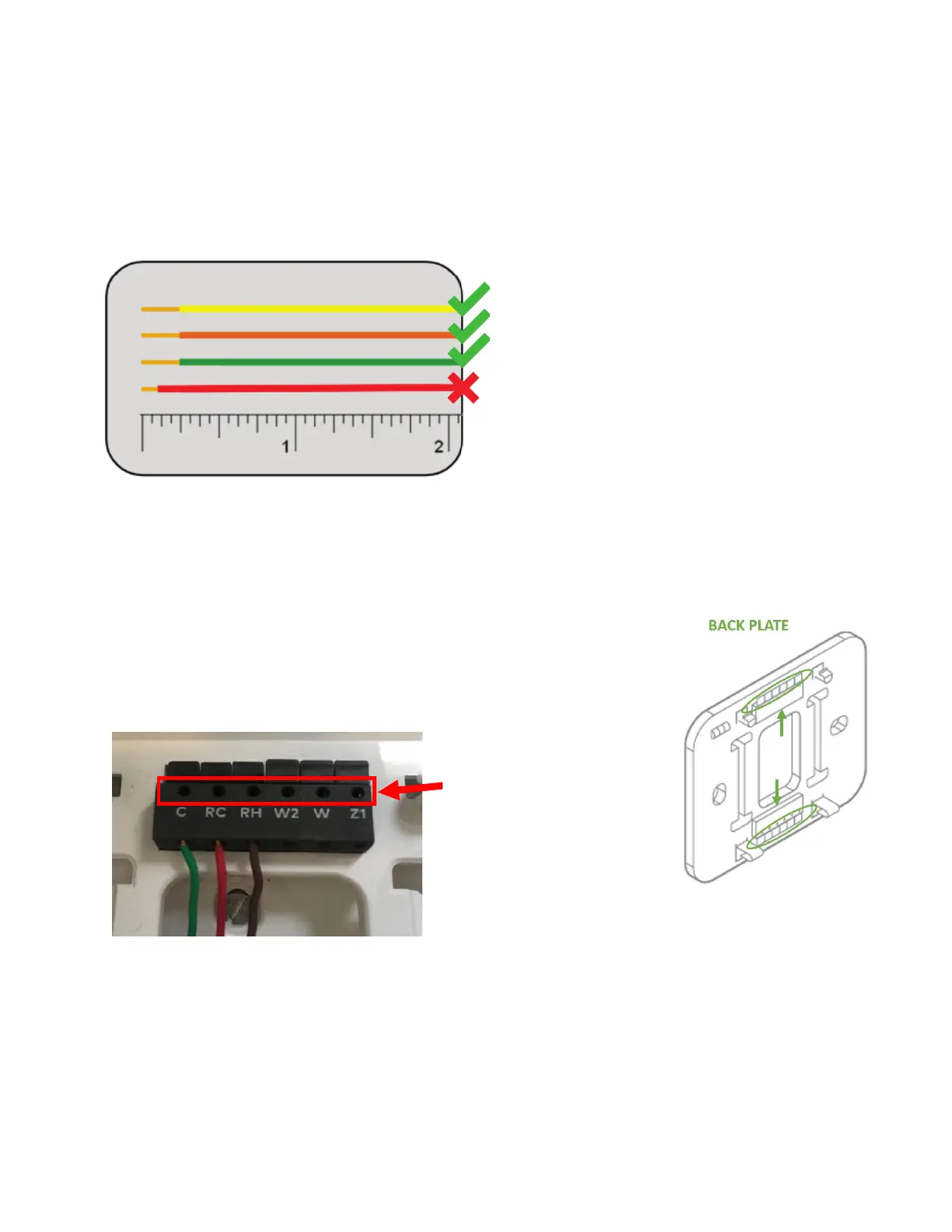 10. Check that the wires have exposed ends of at least 1/4”, as indicated in the image below. If not, you can peel back the color