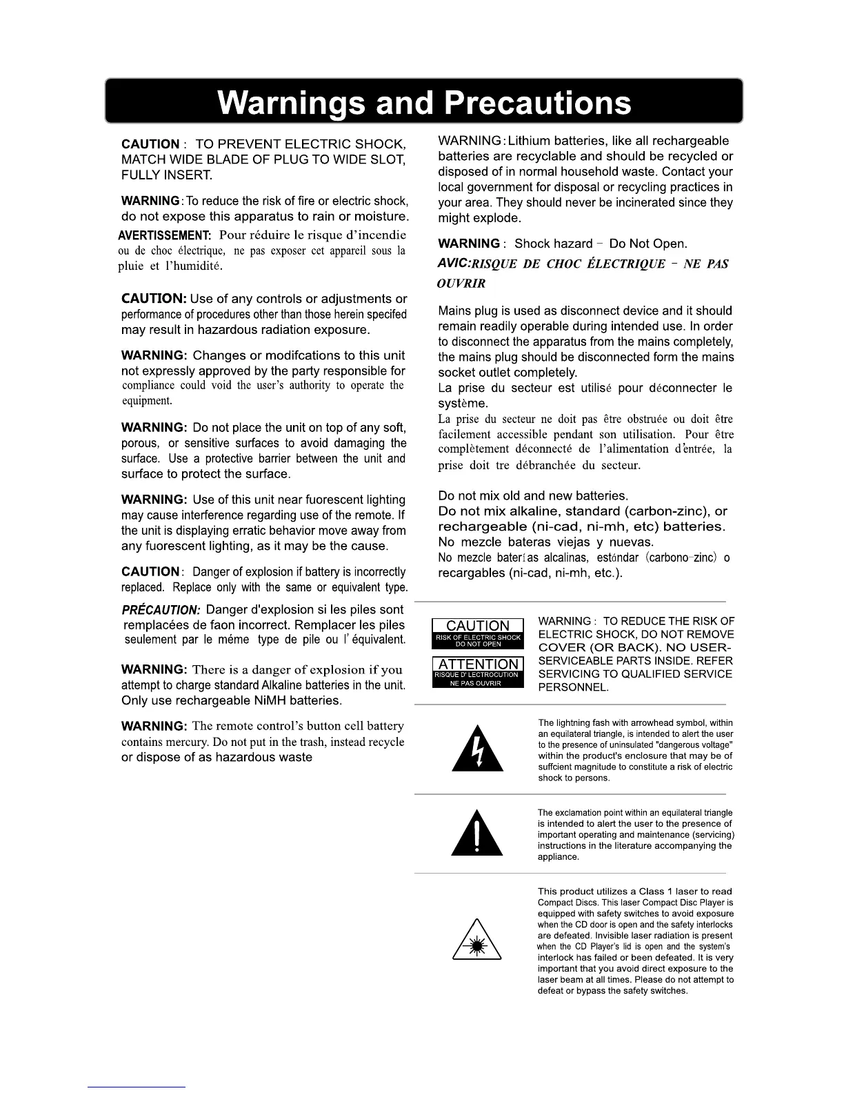 FROZEN 69127-WINT - Warnings and Precautions; Electrical and Environmental Safety; Battery Handling and Safety; Laser Product Warning