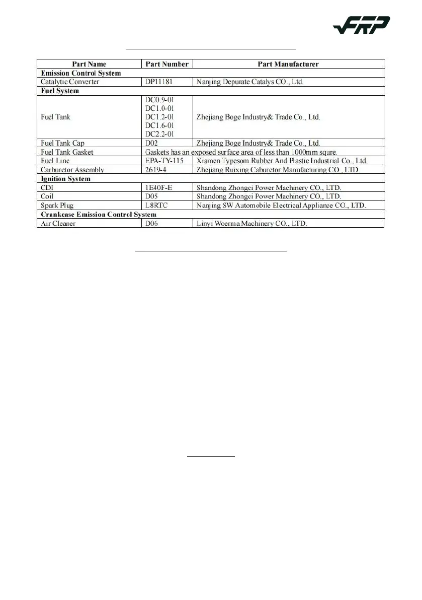 LIST OF EMISSION RELATED PARTS