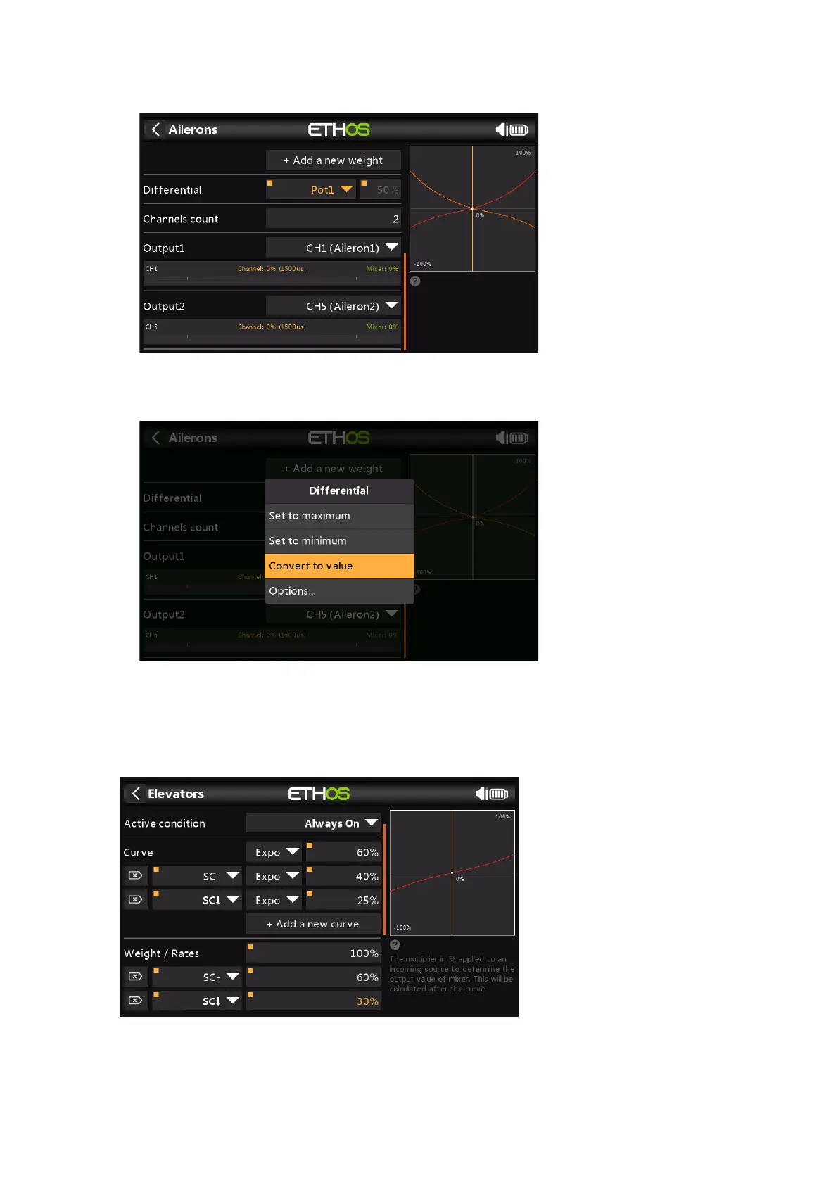 In a similar way to the Ailerons, we can set up triple rates and expo for the Elevator and