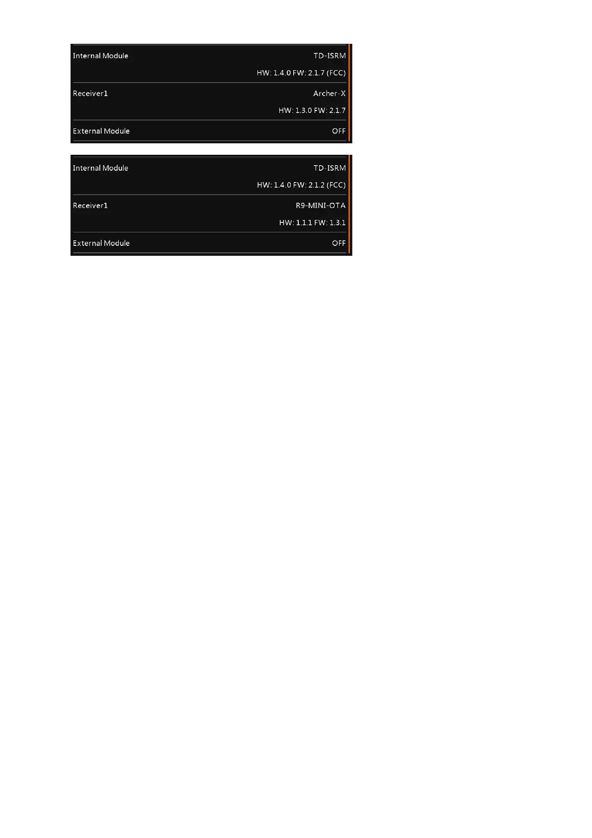 Details of the external RF module (if fitted), including hardware and firmware versions if