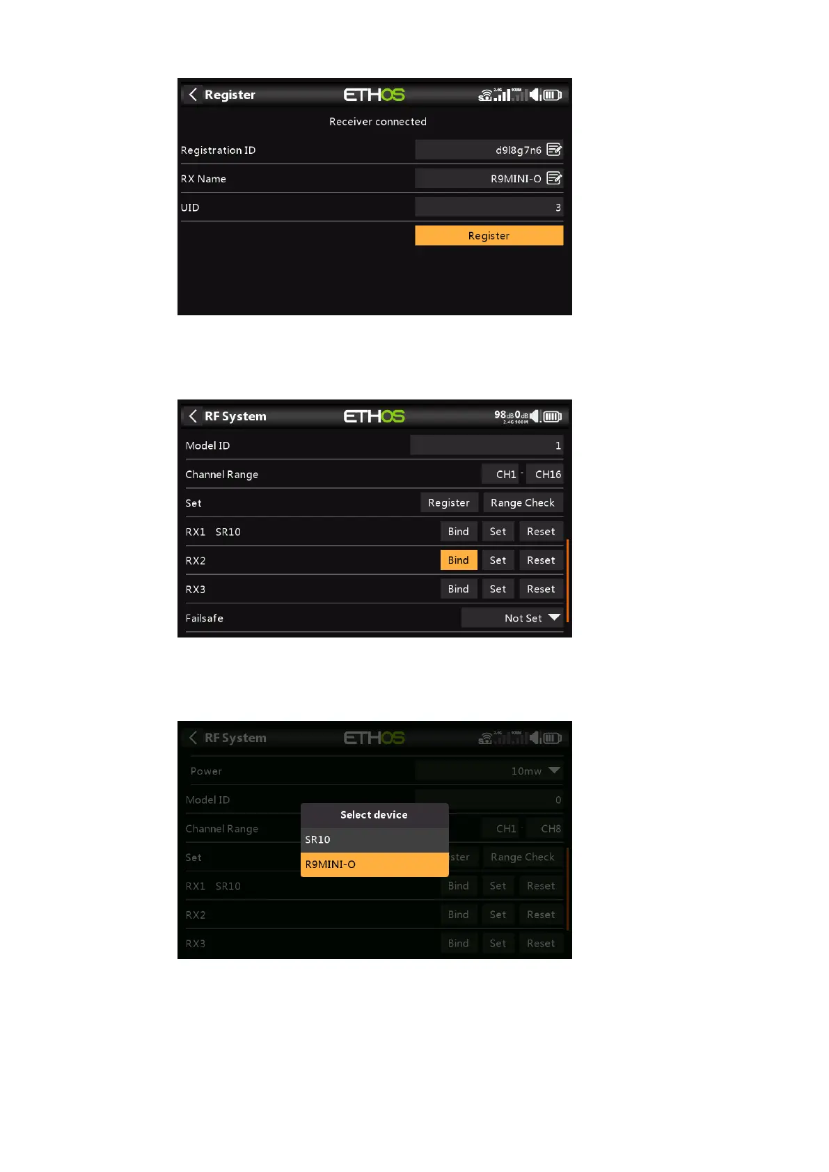 5. Tap 'Bind' on either the RX2 or RX3 line.