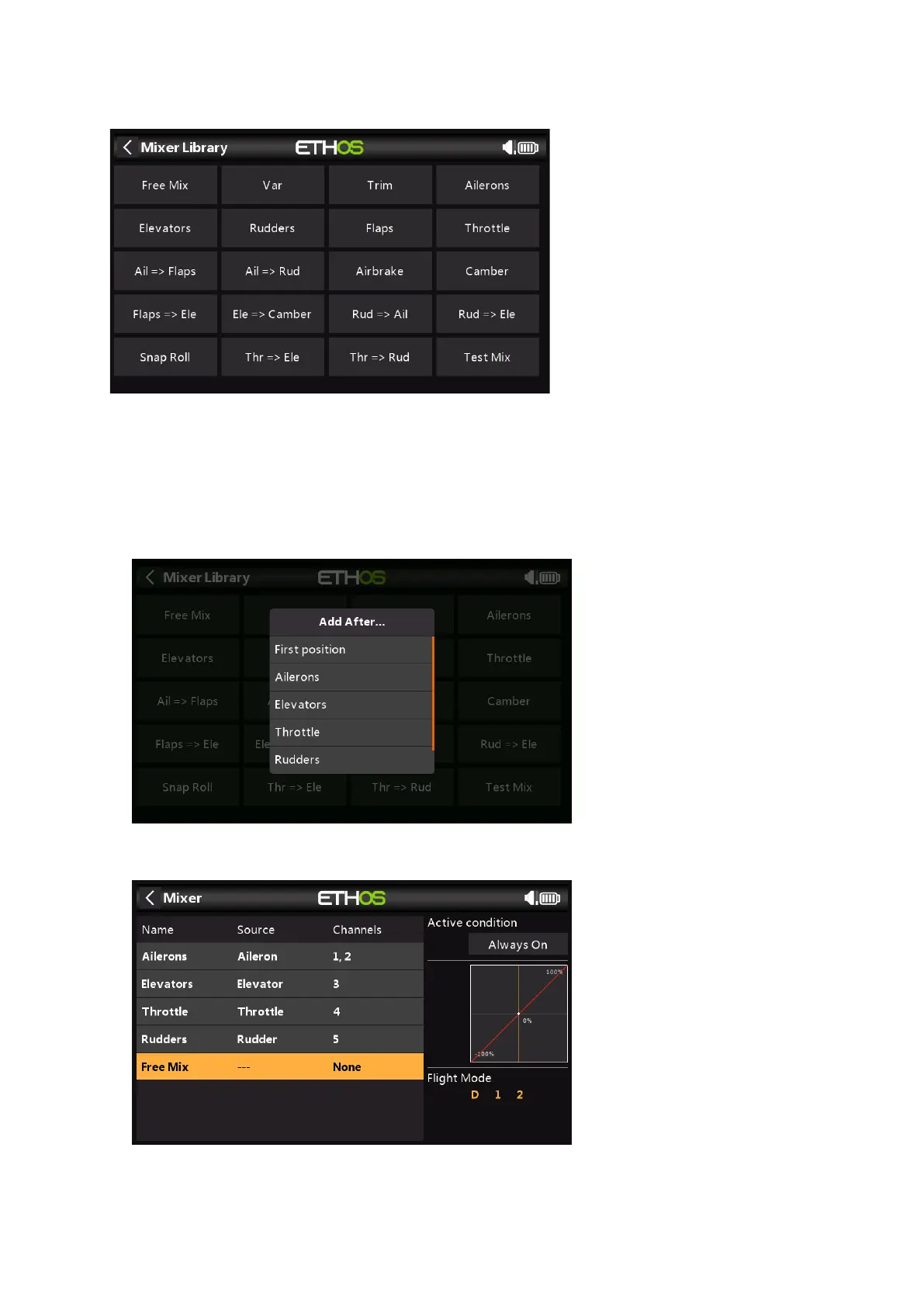 Next the position for the new mixer line must be chosen, in this example after ‘Rudders’.