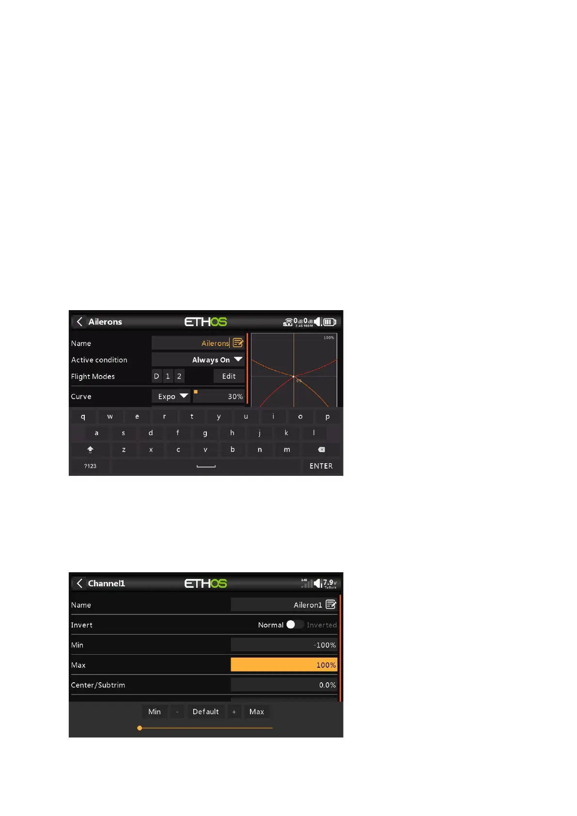 Ethos provides a virtual keyboard for editing text fields.