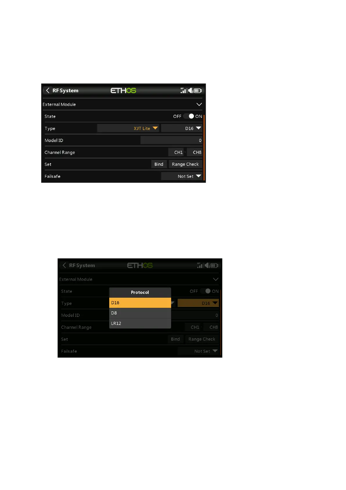 The XJT Lite can operate in D16 (up to 16 channels), D8 (up to 8 channels) or LR12