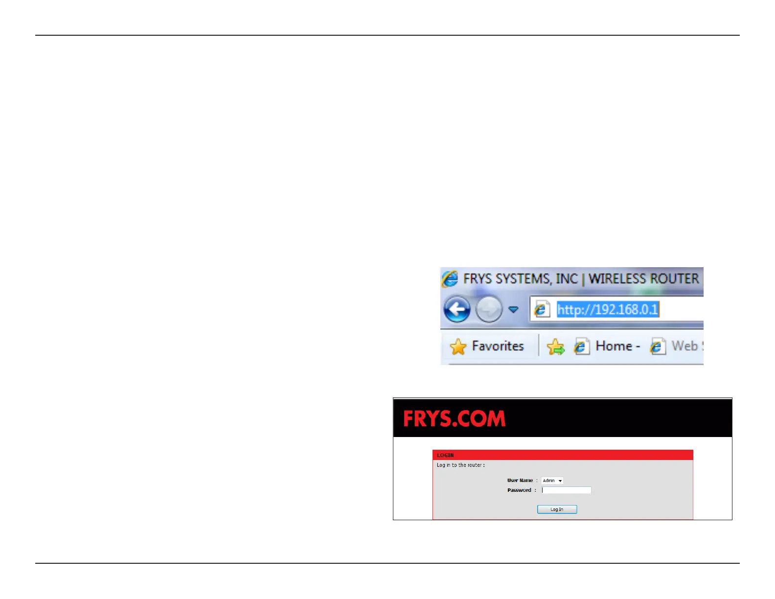 This section will show you how to congure your new Fry’s wireless router using the web-based conguration utility.