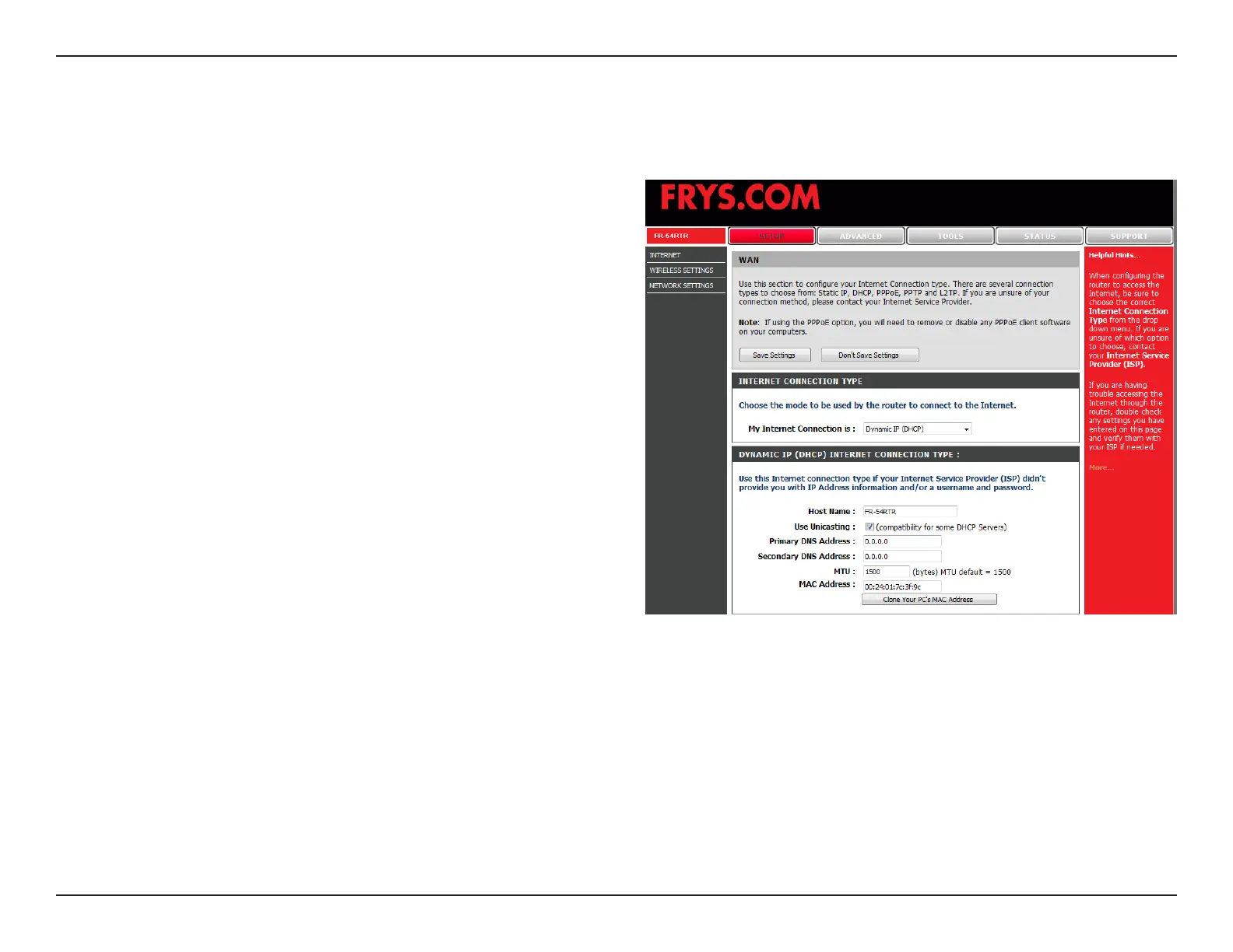 The default MAC Address is set to the WAN’s physical