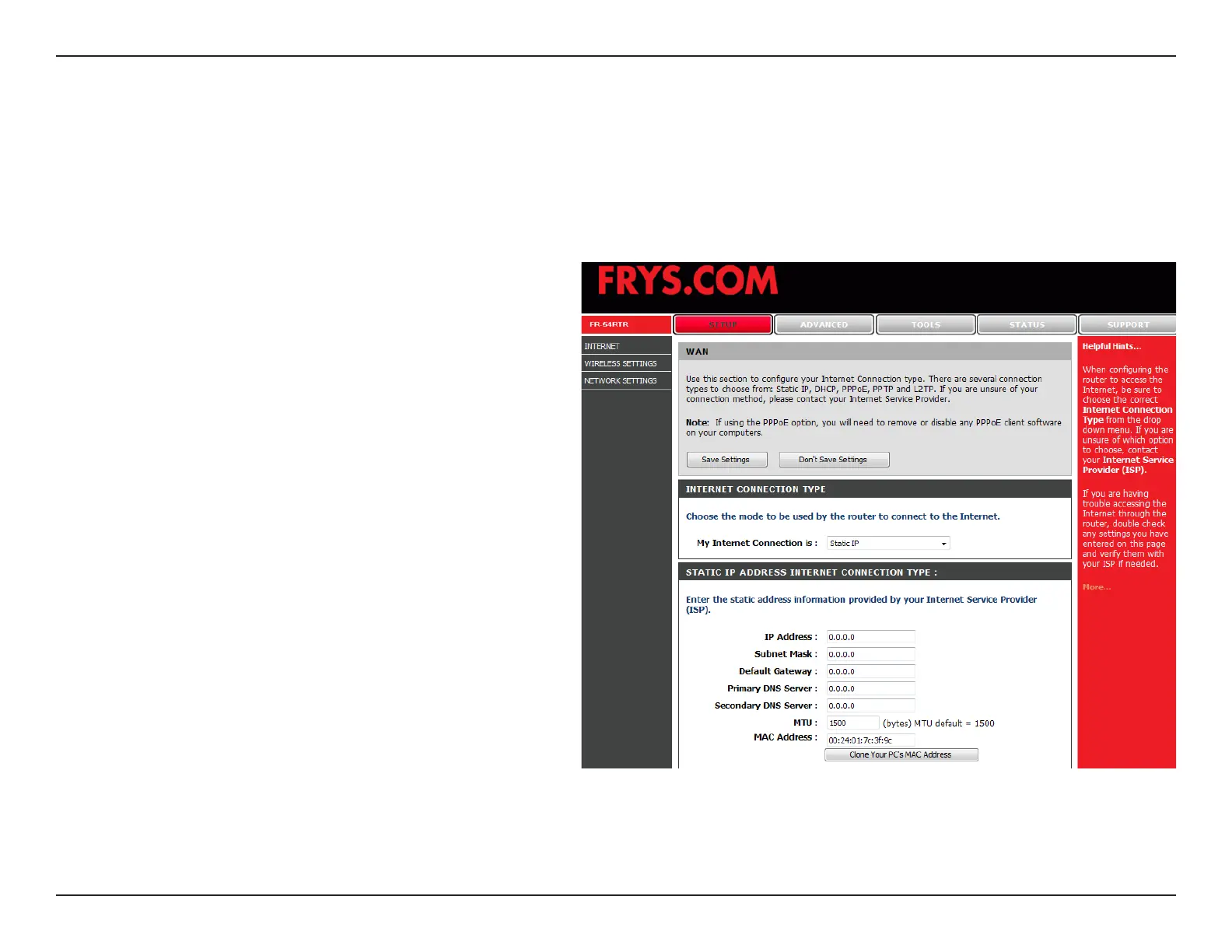The default MAC Address is set to the WAN’s