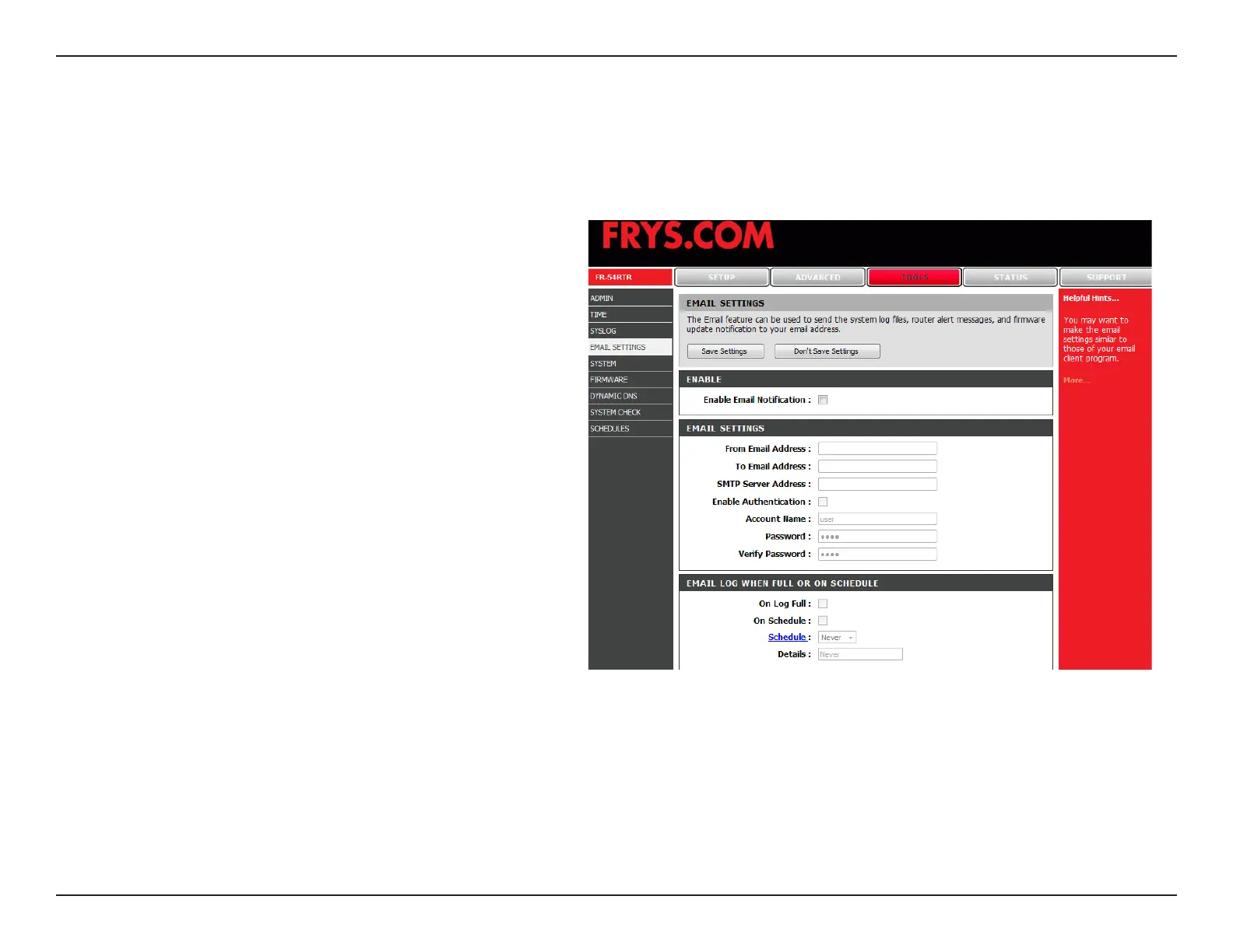 Use this feature to send system log les, router alert messages, and rmware update notications to your email