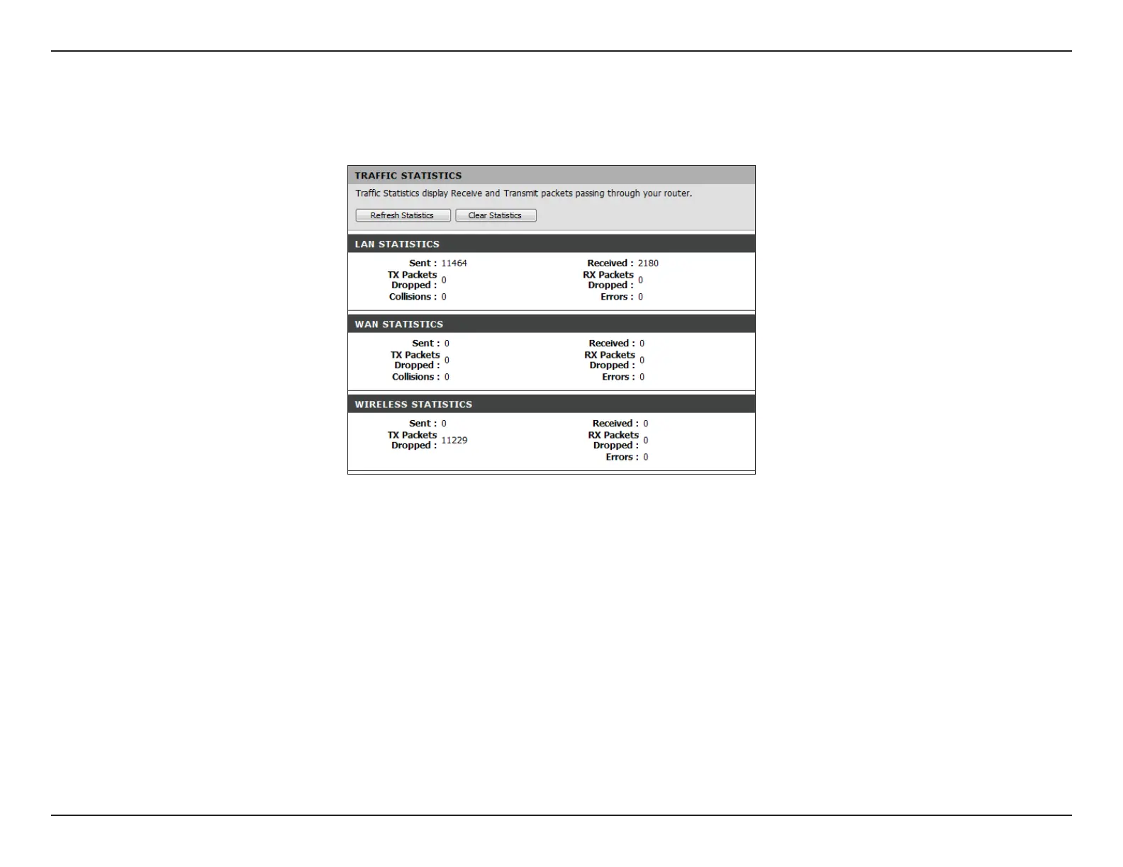 on both the WAN and the LAN ports. The trafc counter will reset if the device is rebooted.