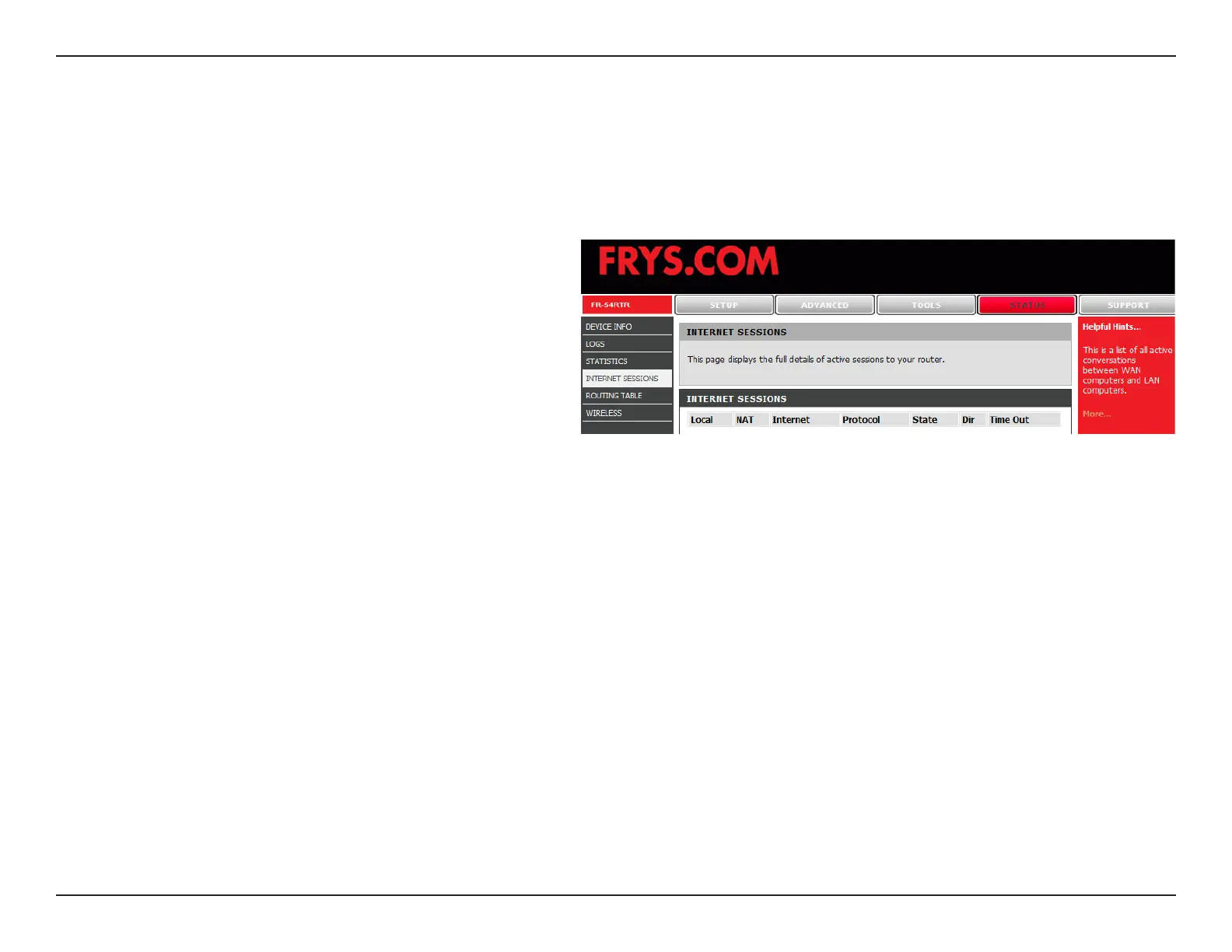 The Internet Sessions page displays full details of active Internet sessions through your router. An Internet session is