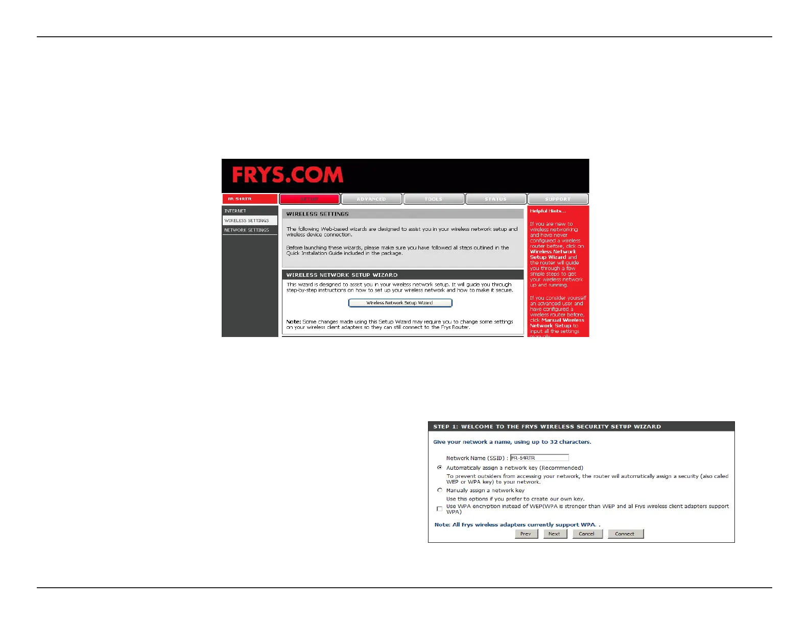 To run the security wizard, browse to the Setup page and then click the Launch Wireless Security Setup Wizard