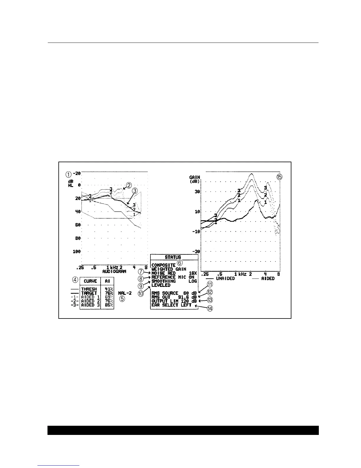 1. dB HL graph for unaided and aided audiogram responses