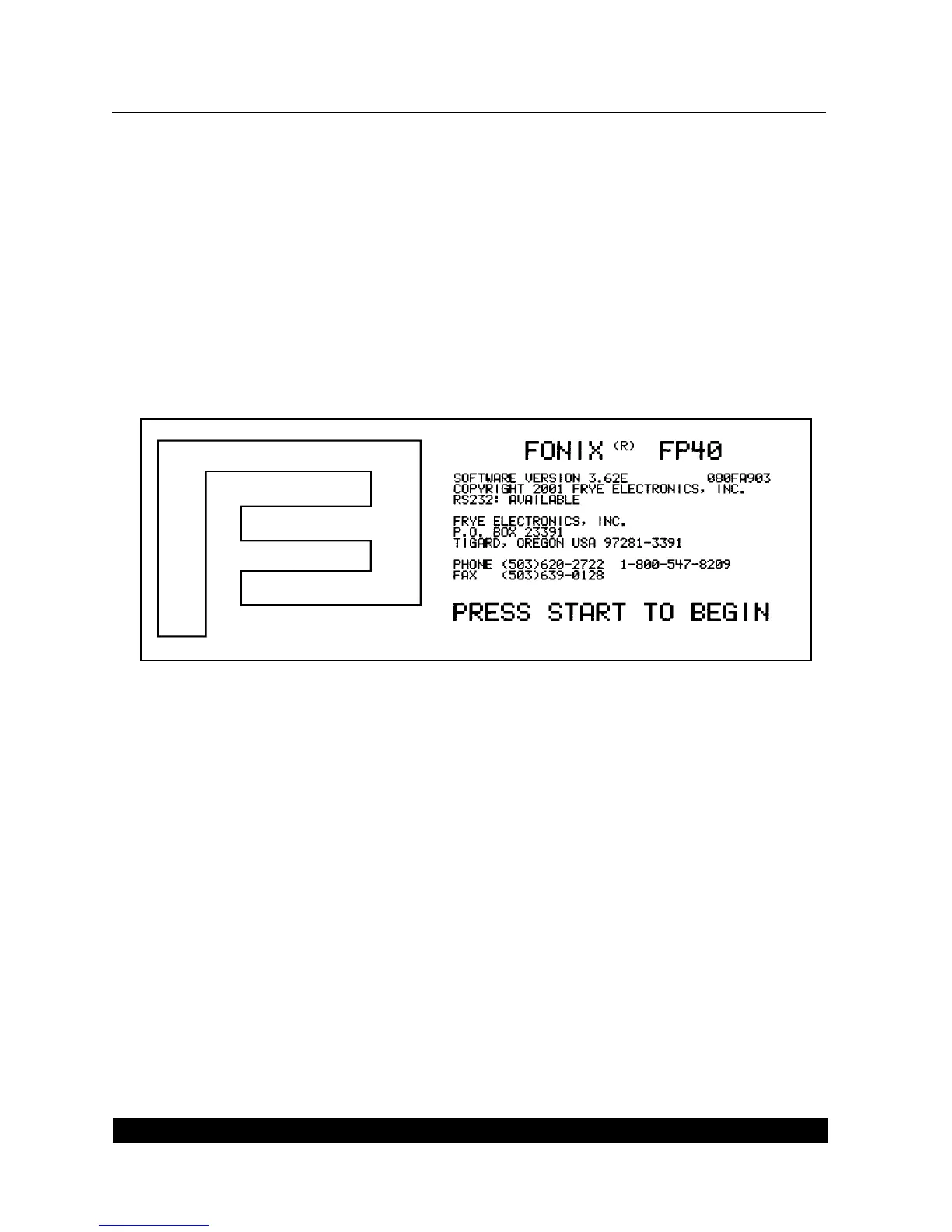 The Opening Screen of the FP40 (Figure 2.10) contains some useful information including: