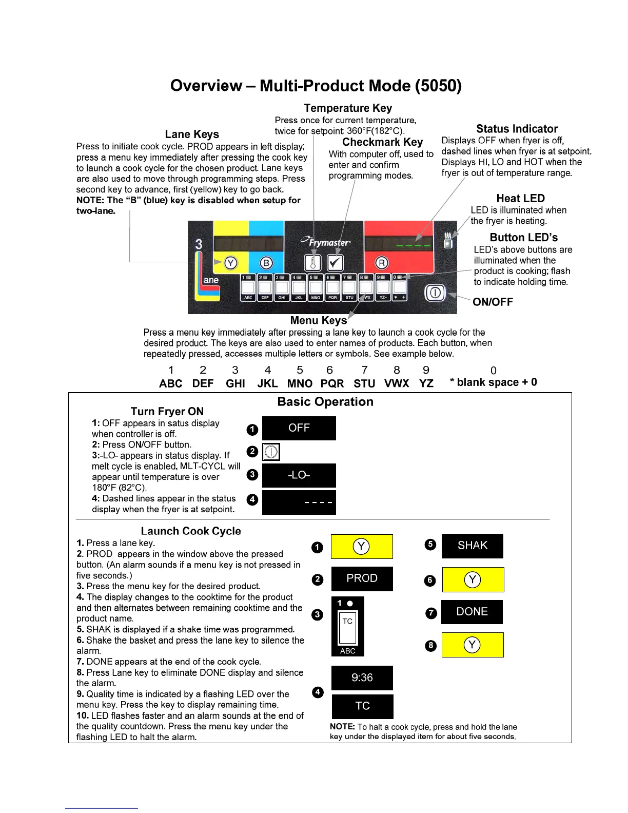 Frymaster 1814 - BK 1814 Computer Overview - Multi-Product Mode; Control Panel Components; Menu Keys Usage; Basic Operation: Turn Fryer ON