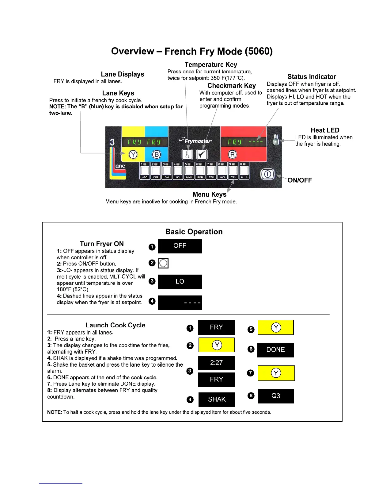 Frymaster 1814 - BK 1814 Computer Overview - French Fry Mode; French Fry Mode Controls; Basic Operation: Turn Fryer ON; Launch Cook Cycle: French Fries