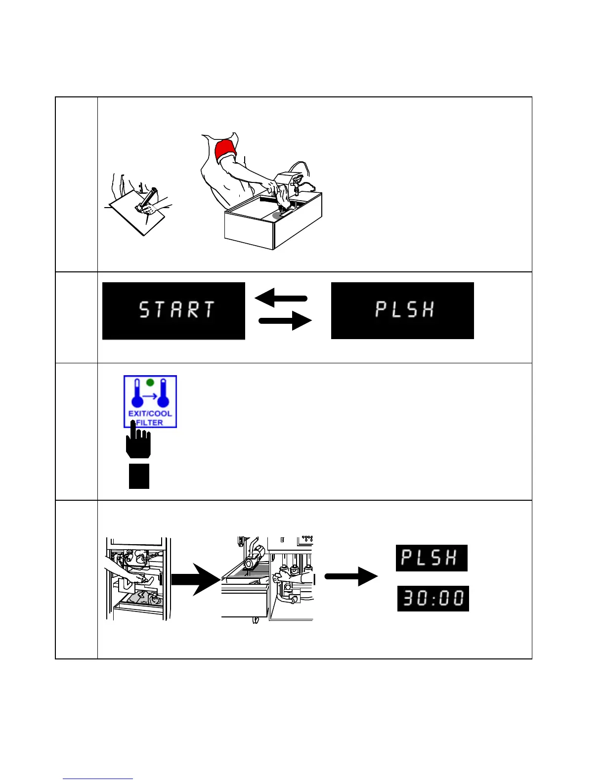 Open drain valve. Turn pump ON. Computer displays PLSH 30:00 to polish shortening for 30 minutes.