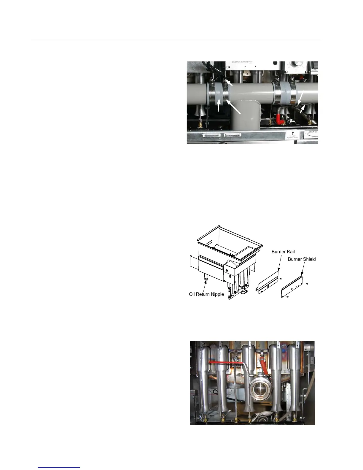 Oil-return nipple, burner shield, and burner rail.