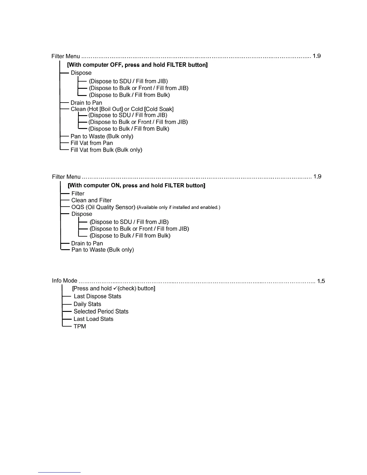 Frymaster FilterQuick Version 2 - Filterquick Filter and Info Mode Menu Tree