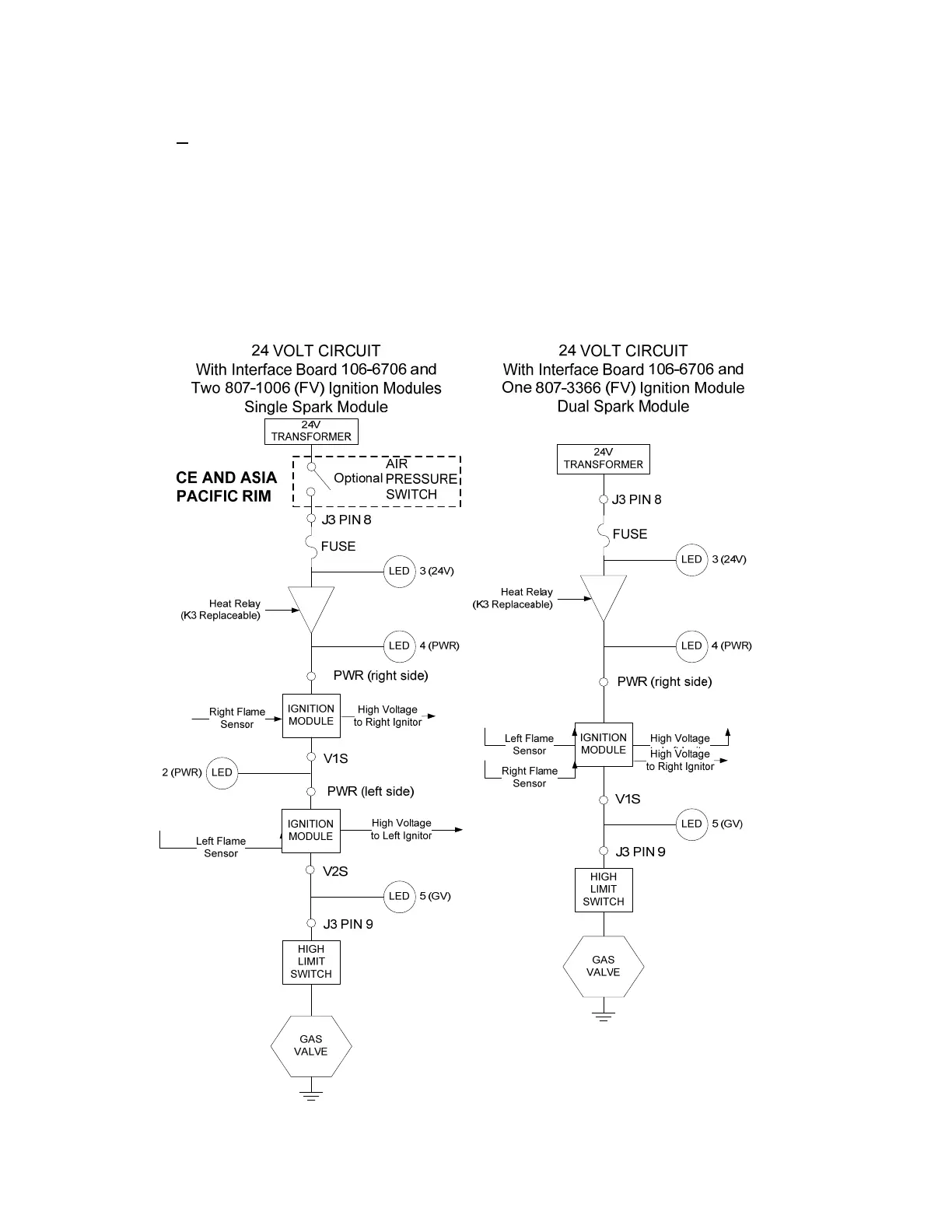24 VAC is present on interface board J3 pin 9 (LED 5 (GV))