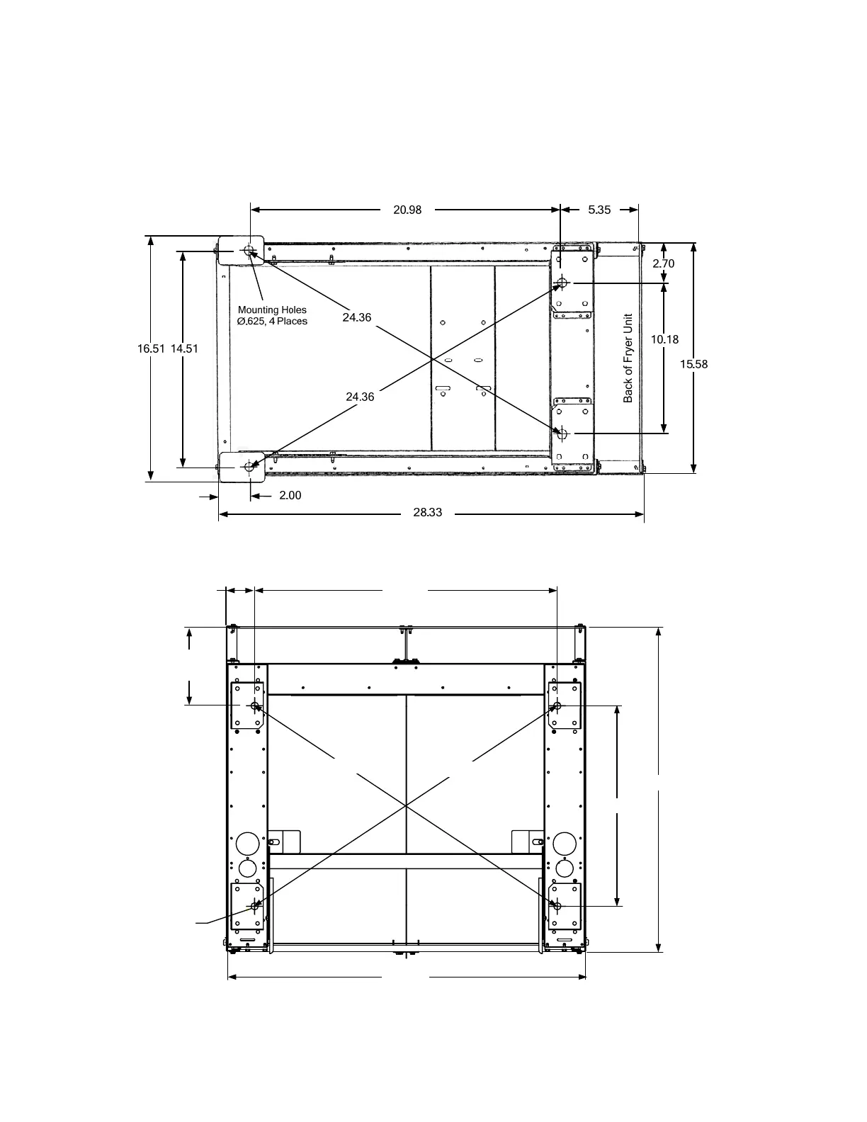 2-Fryer Battery: LWH (inches) 28.30 X 31.45 X 45.5 – 490 lbs. empty.