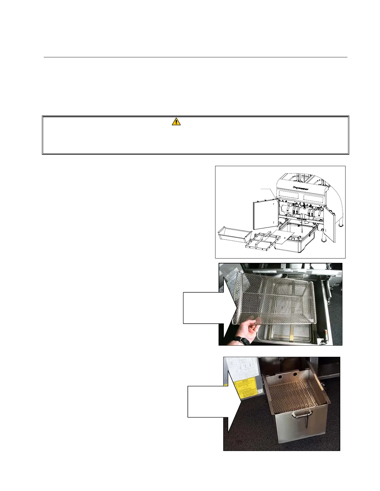 while the other frypots in a battery remain in operation. Section 4.2 covers preparation of the filter