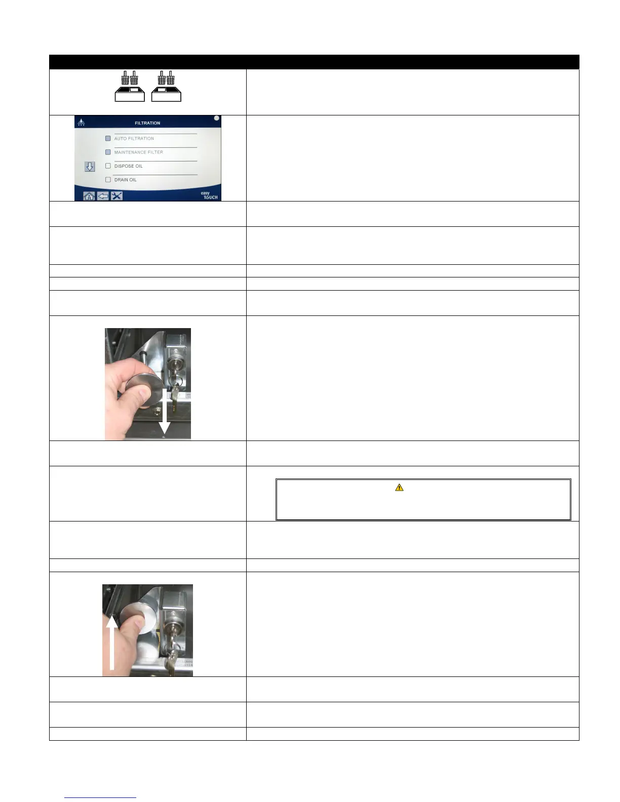 Open the filter pan slowly to avoid splashing of hot oil that