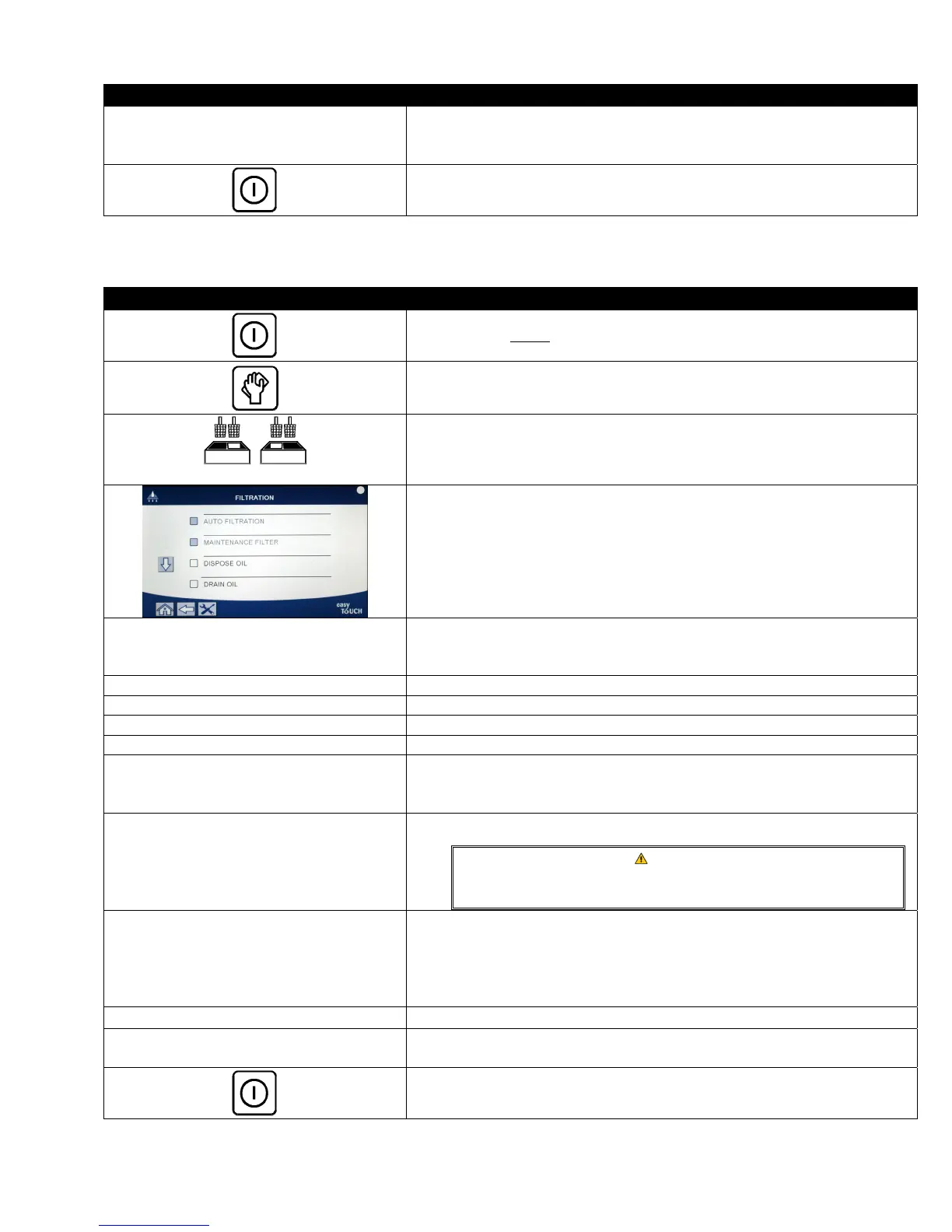 Open the filter pan slowly to avoid splashing of hot oil that