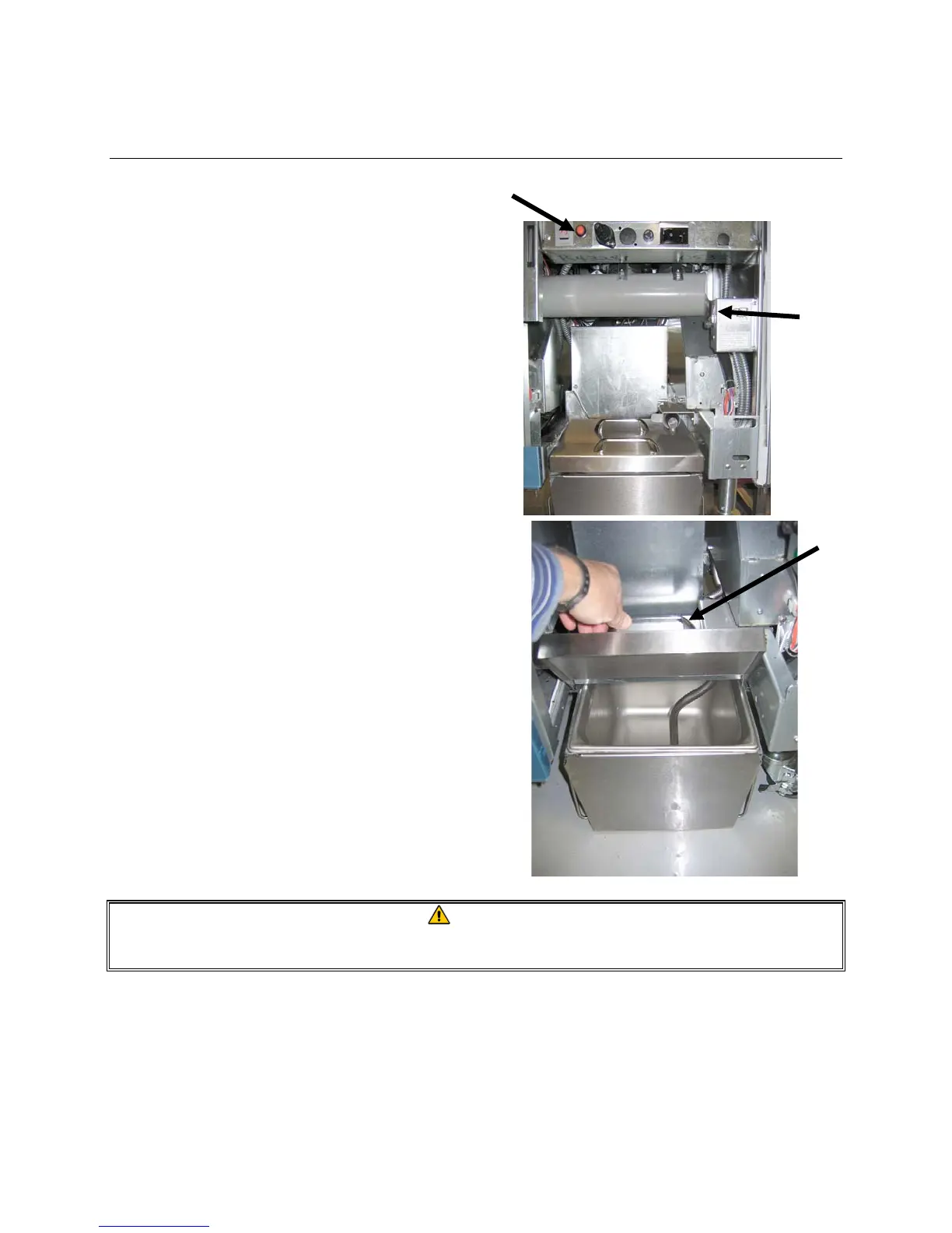 The surfaces of the solid shortening heater are hot. Do not touch with bare hands. Wear protective