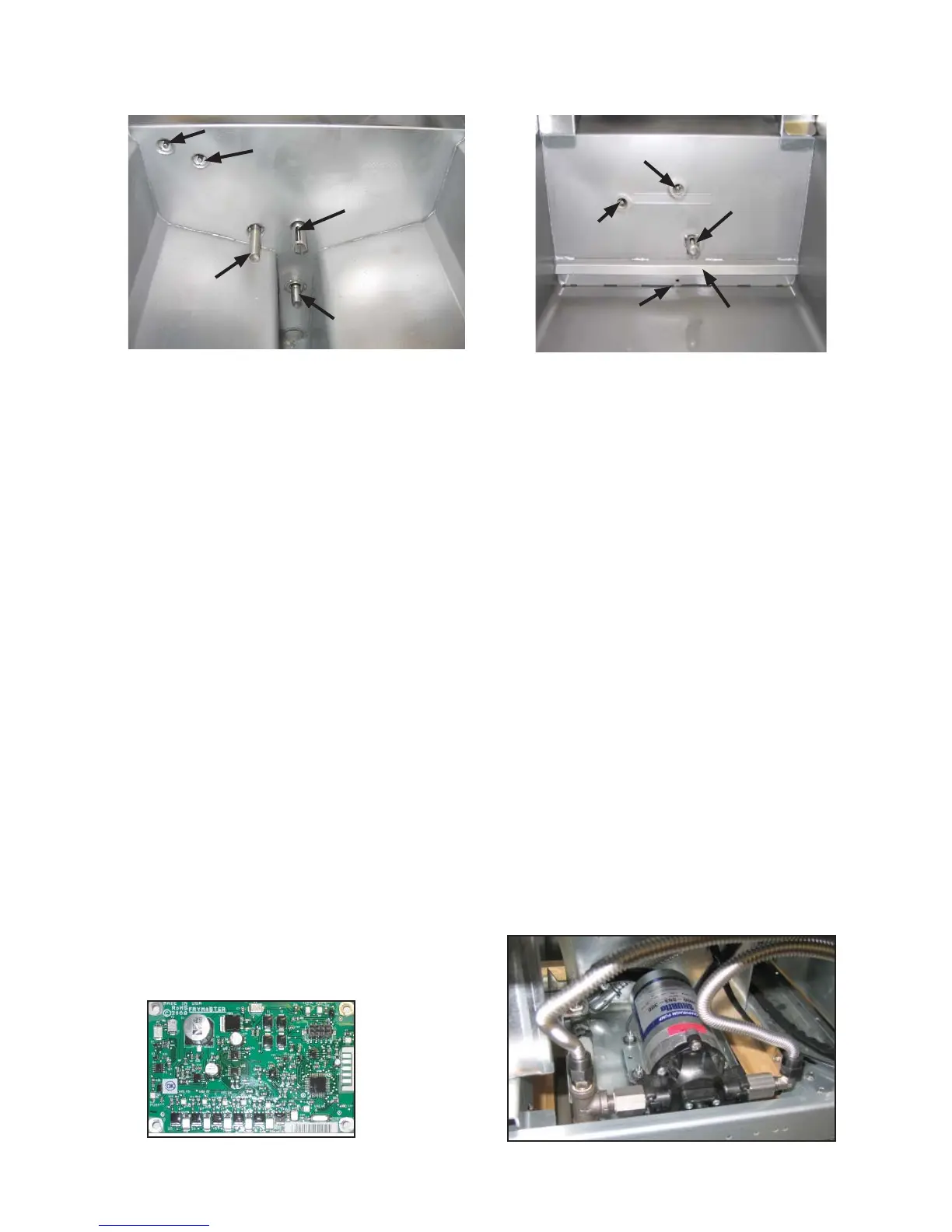 Ports and sensors inside a gas frypot. Oil return/