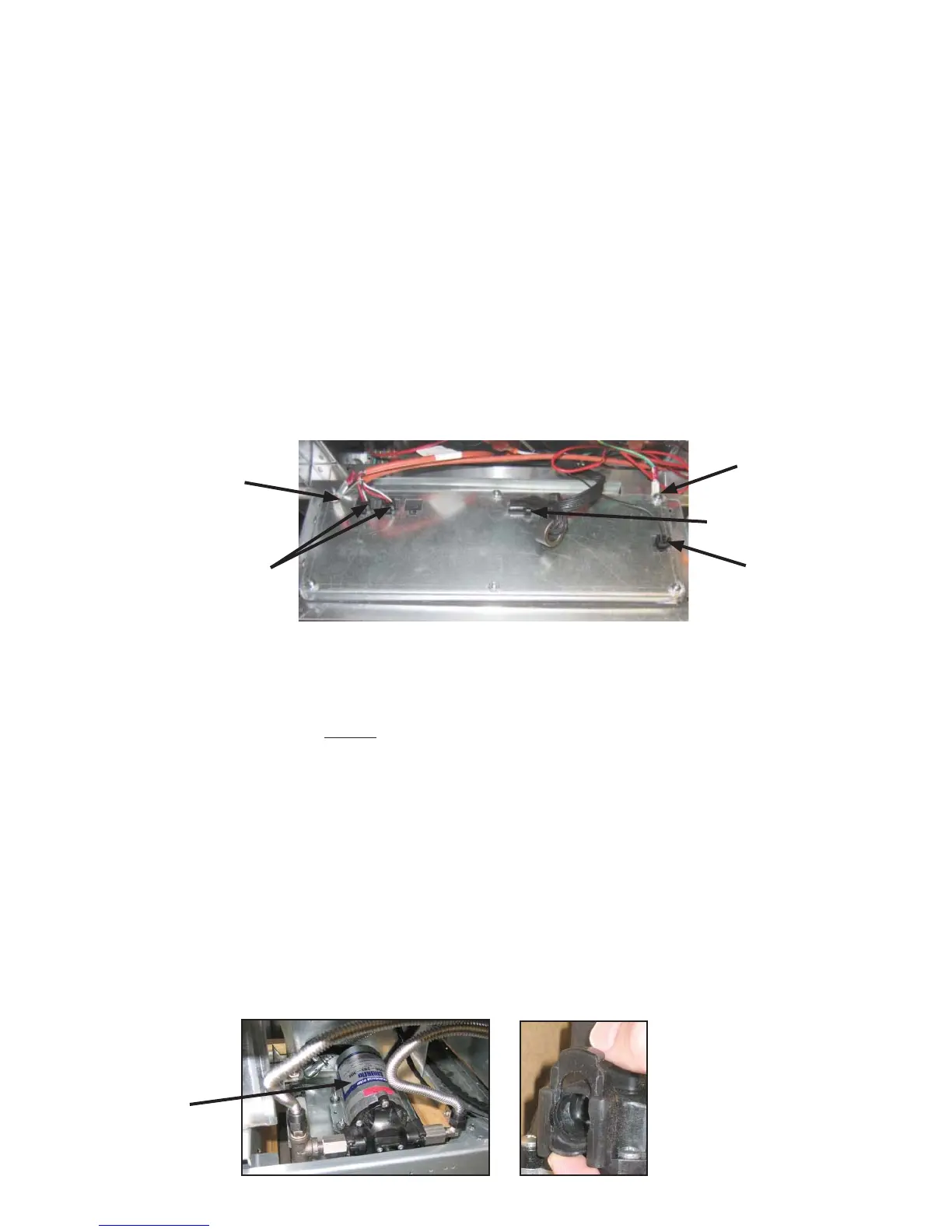 Loosen the four nuts attaching the pump to the pump tray.