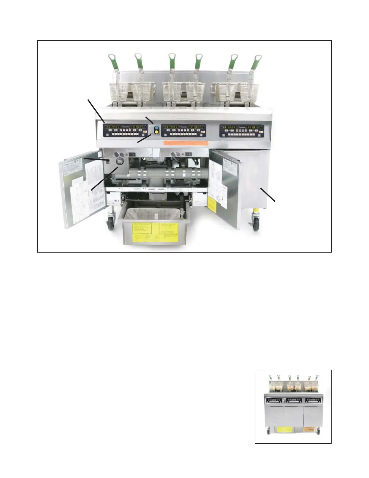 • Low volume frypot —30 pounds (15 liters) rather than 50 pounds (25 liters) of oil.