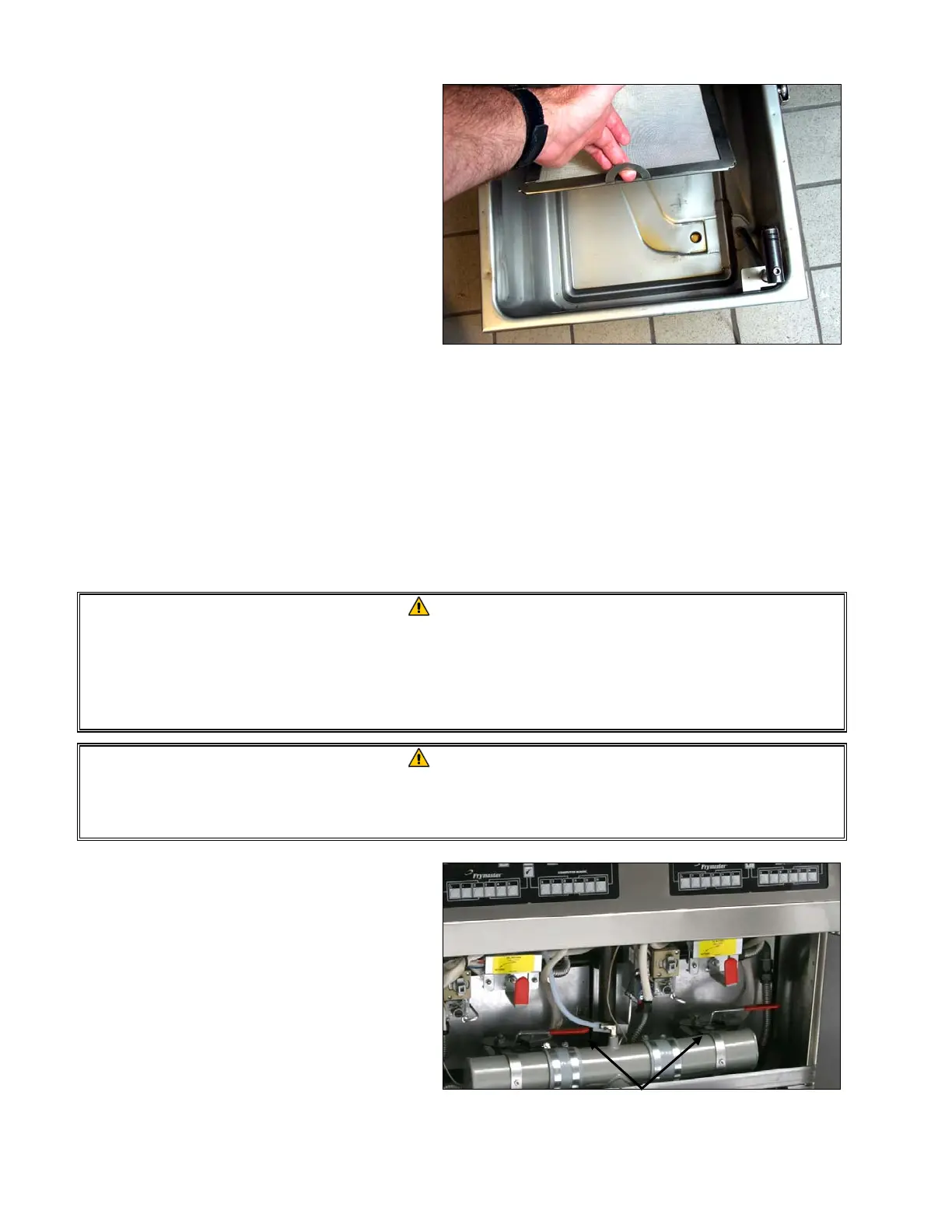 of the frypots into the filter pan. If