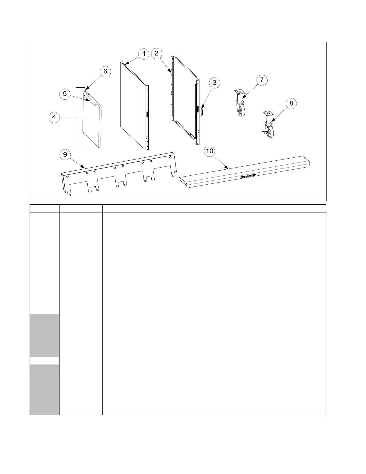 2.3 Doors, Sides, Tilt Housings, Top Caps and Casters