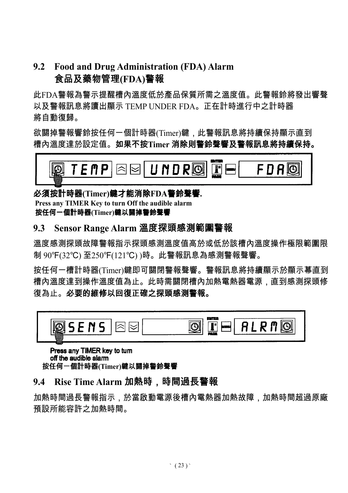 Press any TIMER Key to turn Off the audible alarm