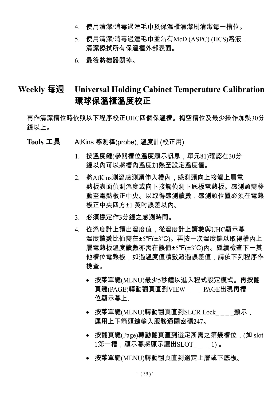 %& Universal Holding Cabinet Temperature Calibration