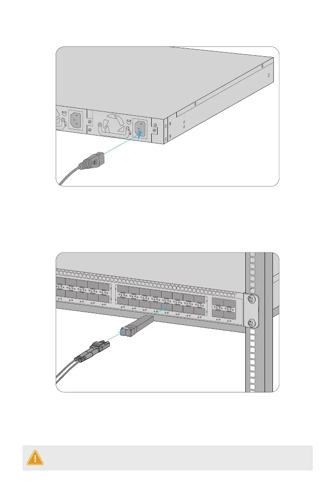 CAUTION: Laser beams will cause eye damage. Do not look into bores of optical modules