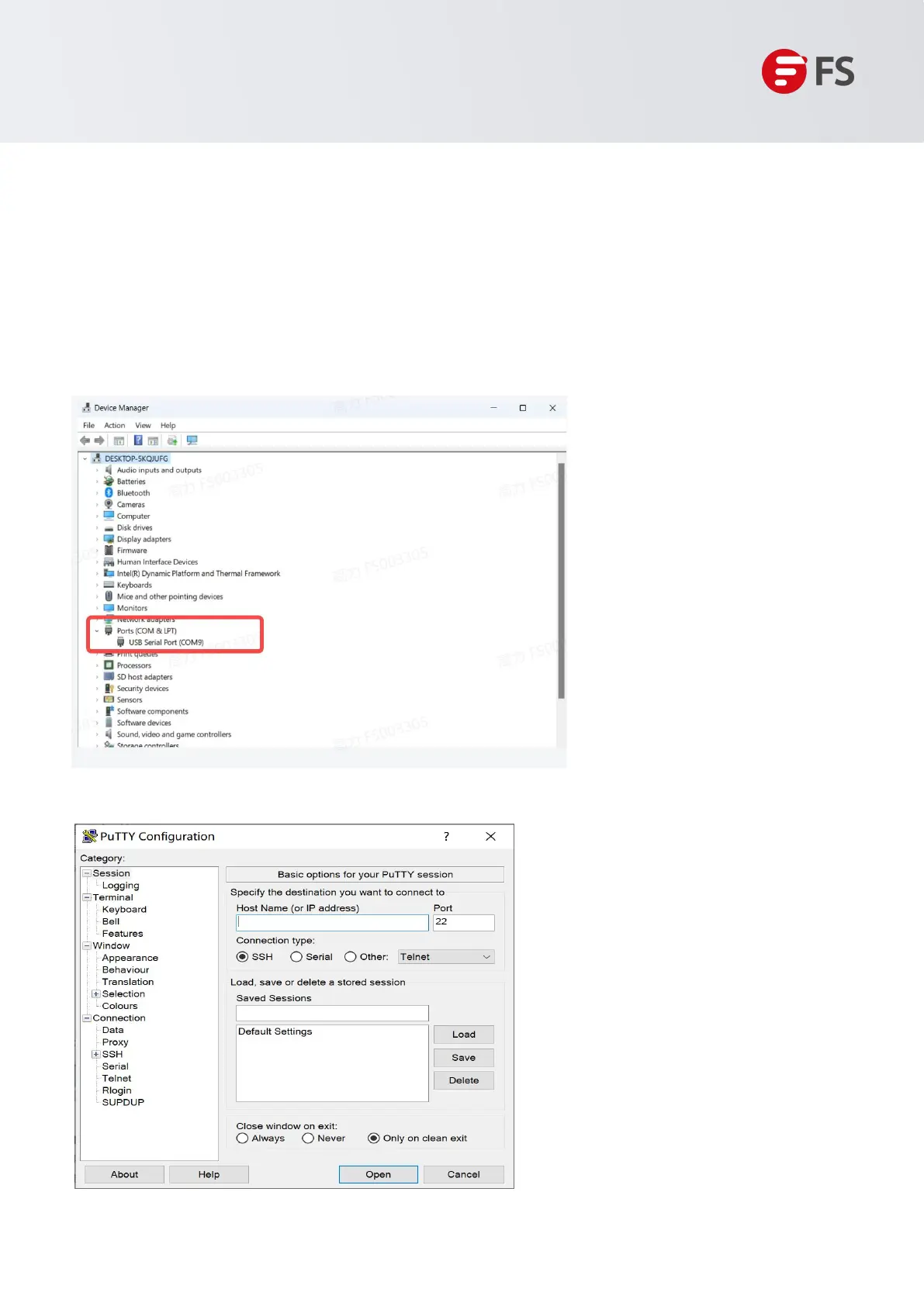 Step 3: Start Terminal Emulation Software on the Computer (Such as PUTTY)