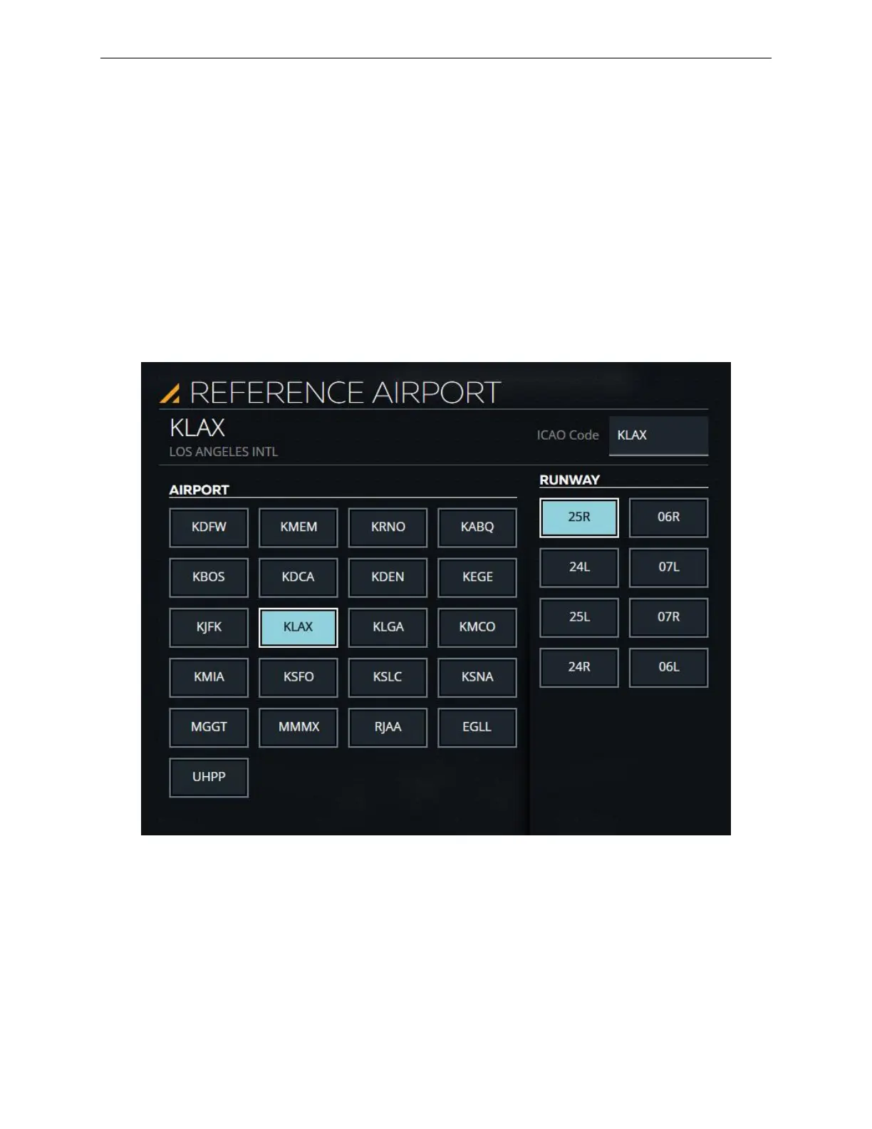 sliding panel. This panel shows a list of available airport ICAO codes along with